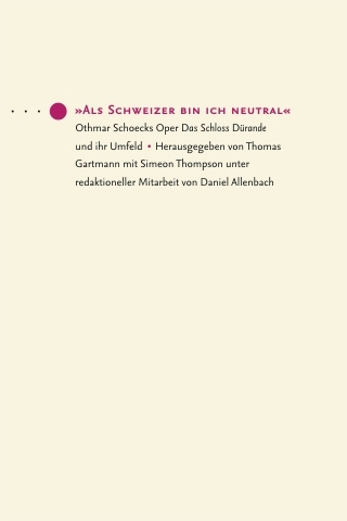 "Als Schweizer bin ich neutral" Othmar Schoecks Oper "Das Schloss Dürande" und ihr Umfeld von Thomas Gartmann Buch | Hardcover 2018 | Auflage: 1 | Edition Argus ISBN: 9783931264901 CHF 68,60 (inkl. MwSt) Titel ist leider vergriffen; keine Neuauflage