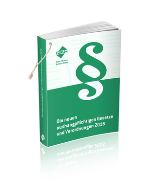"Die neuen aushangpflichtigen Gesetze und Verordnungen 2016, 15. überarb. Aufl." Buch | Softcover 2016 | FVH Forum Verlag Herkert GmbH ISBN: 9783902617385 CHF 76,65 (inkl. MwSt) Titel erscheint in neuer Auflage