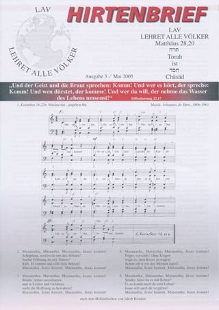"Und der Geist und die Braut sprechen: Komm!" Offenbarung 22,17 HIRTENBRIEF - 3 - Mai 2005 von Gerhard & Ellen Schadt-Beck Loseblattwerk 2005 | Auflage: 500 | LAV - "LEHRET ALLE VÖLKER" ISBN: 9783949050268 CHF 0,30 (inkl. MwSt)