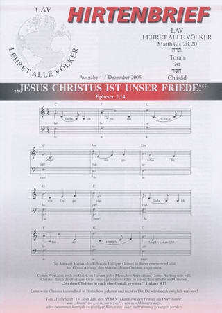 "JESUS CHRISTUS IST UNSER FRIEDE." Epheser 2,14 HIRTENBRIEF - 4 - Weihnachten 2005 von Gerhard & Ellen Schadt-Beck Loseblattwerk 2005 | Auflage: 500 | LAV - "LEHRET ALLE VÖLKER" ISBN: 9783949050282 CHF 0,30 (inkl. MwSt)