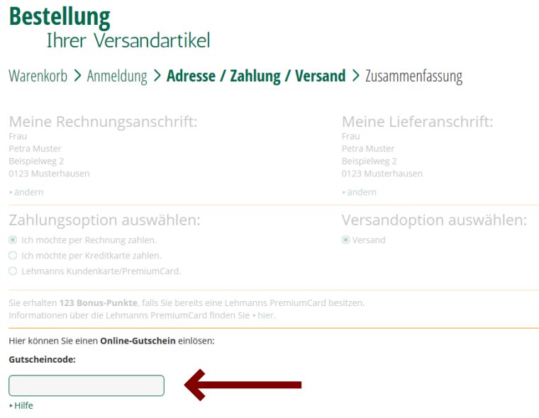 Für lehmanns.ch sind individuelle Rabatt-Codes im Rahmen von Aktionen verfügbar.