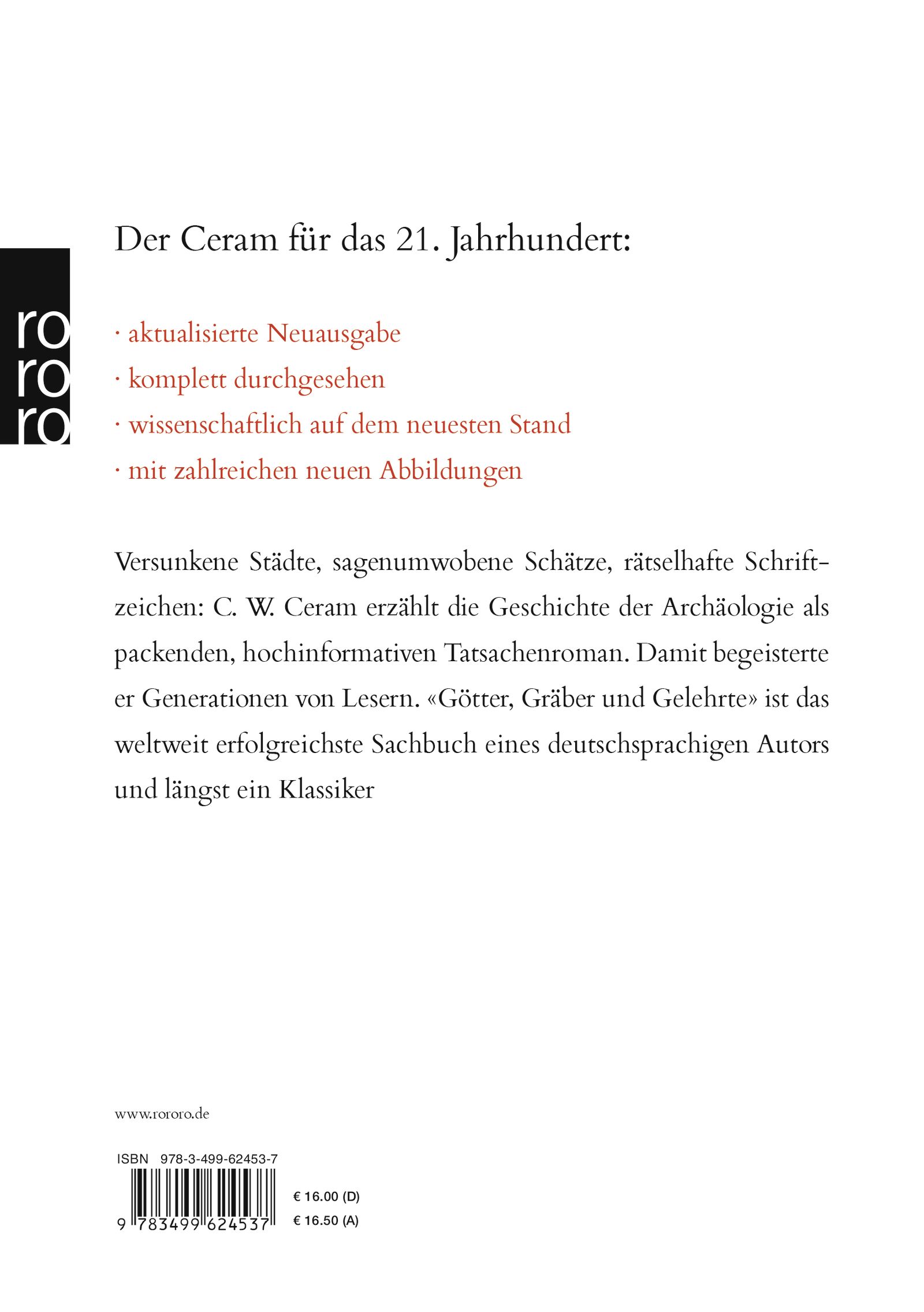Versunkene Städte, sagenumwobene Schätze, rätselhafte Schriftzeichen: C. W. Ceram erzählt die Geschichte der Archäologie als packenden, hochinformativen Tatsachenroman. Damit begeisterte er Generationen von Lesern. «Götter, Gräber und Gelehrte» ist das weltweit erfolgreichste Sachbuch eines deutschsprachigen Autors und längst ein Klassiker