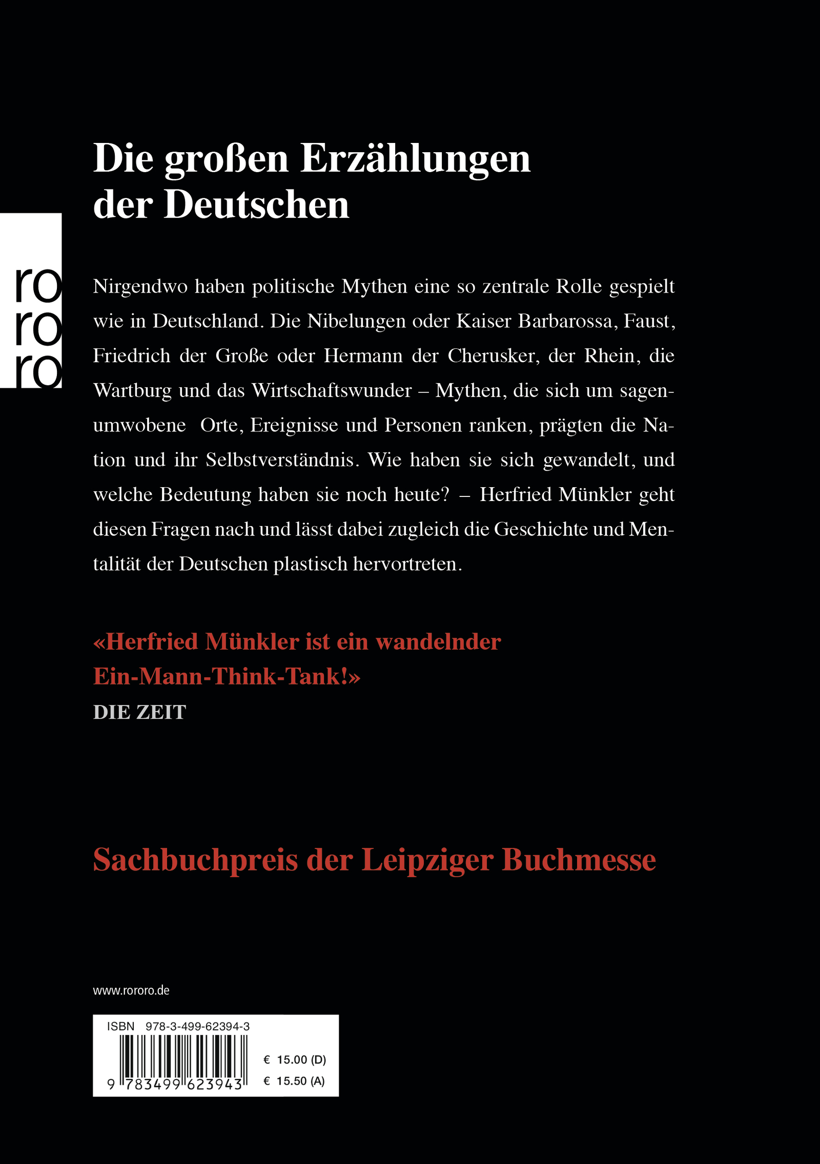 Nirgendwo haben politische Mythen eine so zentrale Rolle gespielt wie in Deutschland. Die Nibelungen oder Kaiser Barbarossa, Faust, Friedrich der Große oder Hermann der Cherusker, der Rhein, die Wartburg und das Wirtschaftswunder - Mythen, die sich um sagenumwobene Orte, Ereignisse und Personen ranken, prägten die Nation und ihr Selbstverständnis. Wie haben sie sich gewandelt, und welche Bedeutung haben sie noch heute? - Herfried Münkler geht diesen Fragen nach und lässt dabei zugleich die Geschichte und Mentalität der Deutschen plastisch hervortreten.
