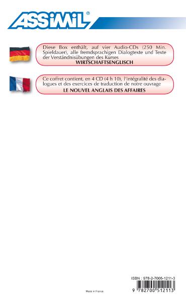 4 CDs. On these CDs you will find the audio recordings of all lessons from the textbook "Business English". These sound recordings are in English only and are context-dependent, each with English, American and Australian native speakers. They contain all the lessons and a variety of exercises from the textbook.