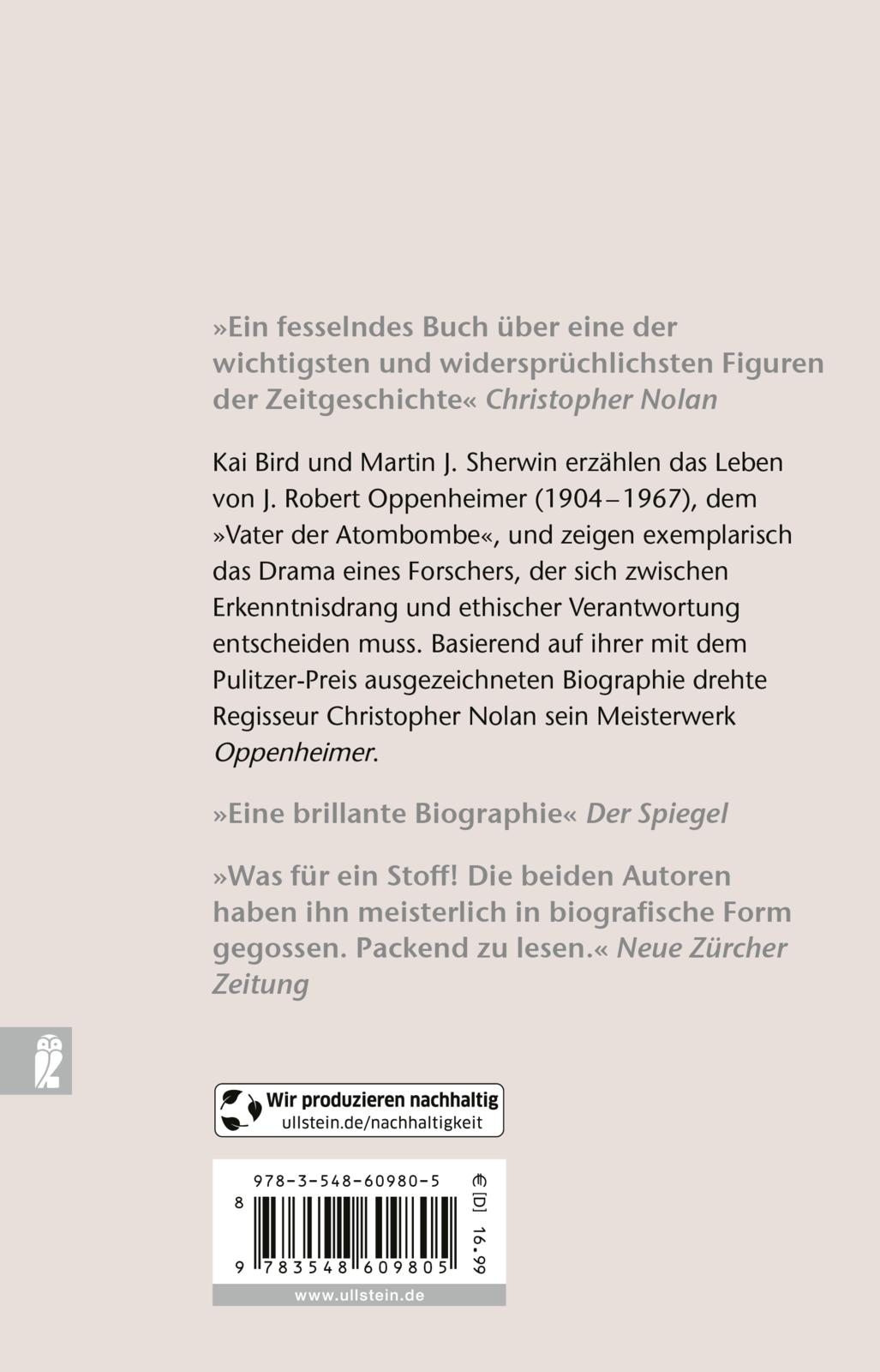 | Schlagworte | Atombombe • Biografie • Biographie • Christopher Nolan • Cilian Murphy • Emily Blunt • Fimausgabe • Florence Pugh • Forschung • Geschichte • Matt Damon • National Book Critics Circle Award; Biography/Autobiography • oppenheimer • Oppenheimer, J. Robert • Pulitzer Preis • Rami Malek • Robert Downey Jr • Taschenbuch / Sachbücher/Geschichte/Biographien, Autobiographien • USA • Wasserstoffbombe • Wissenschaft • Wissenschaftler (Biografien/Erinnerungen); Oppenheimer, J. Robert |