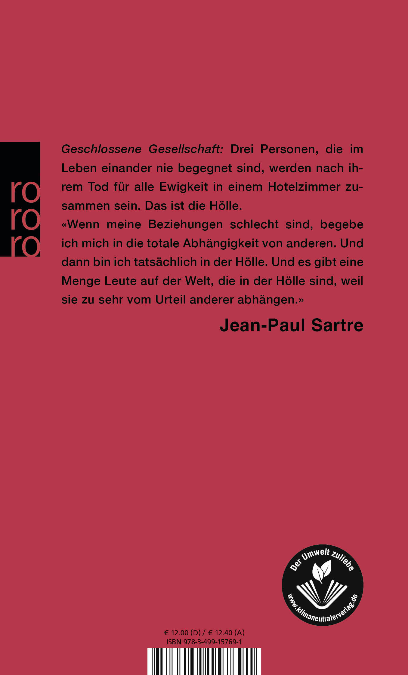 | Schlagworte | Existenzialismus • Hölle • Huis clos • Klassiker • Philosophie • Taschenbuch / Belletristik/Dramatik • TB/Belletristik/Dramatik |