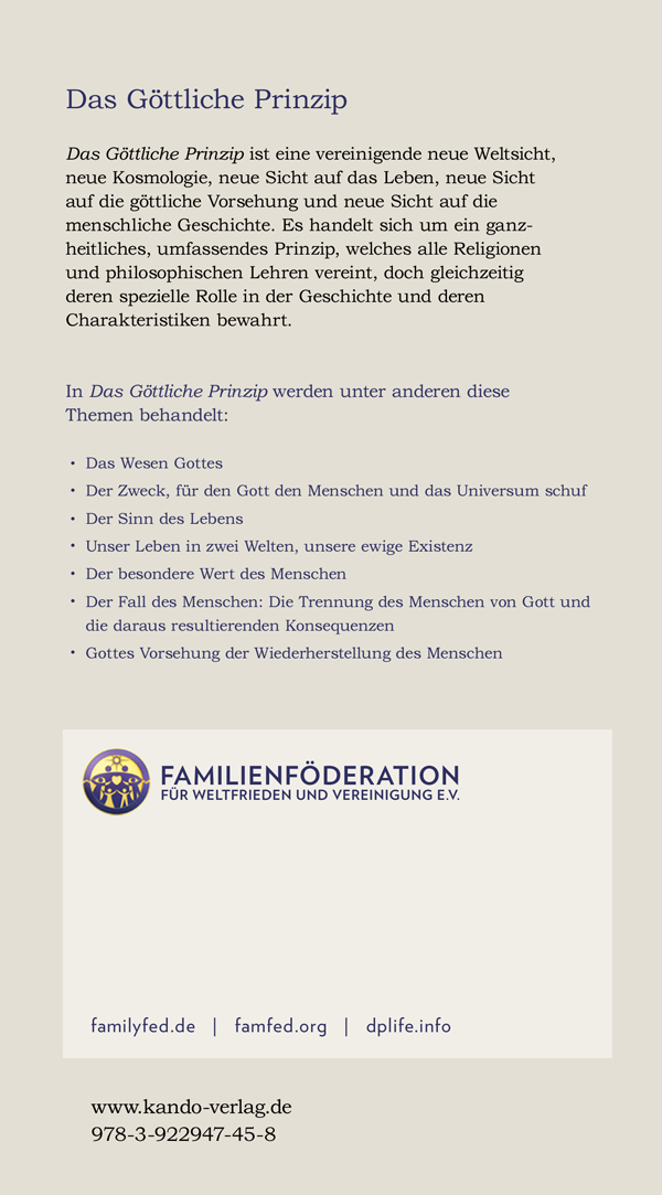 | Schlagworte | Familienföderation • Göttliche Prinzip • Tongil-gyo • Vereinigungsbewegung • wahre Liebe |