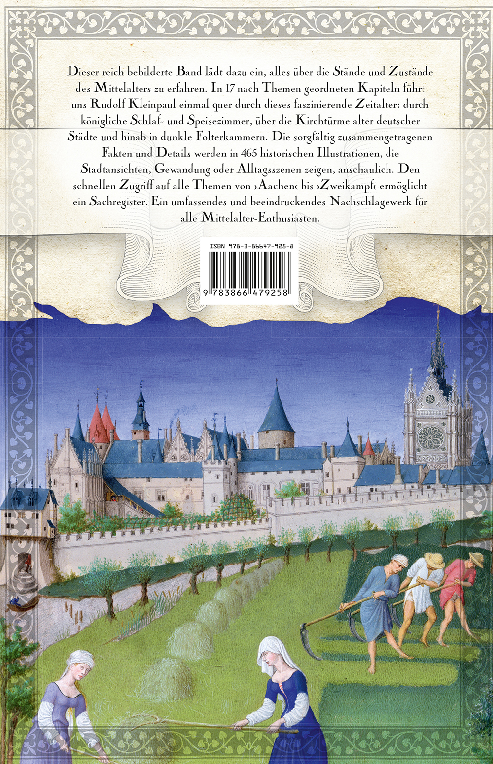 Dieser reich bebilderte Band lädt dazu ein, alles über die Stände und Zustände des Mittelalters zu erfahren. In 17 nach Themen geordneten Kapiteln führt uns Rudolf Kleinpaul einmal quer durch dieses faszinierende Zeitalter: durch königliche Schlaf- und Speisezimmer, über die Kirchtürme alter europäischer Städte bis hinab in dunkle Folterkammern. Die sorgfältig zusammengetragenen Fakten und Details werden in 465 historischen Illustrationen, die Stadtansichten, Gewandung oder Alltagszenen zeigen, anschaulich. Den schnellen Zugriff auf alle Themen von 'Aachen' bis 'Zweikampf' ermöglicht ein Sachregister. Ein umfassendes und beeindruckendes Nachschlagewerk für alle Mittelalter-Enthusiasten.