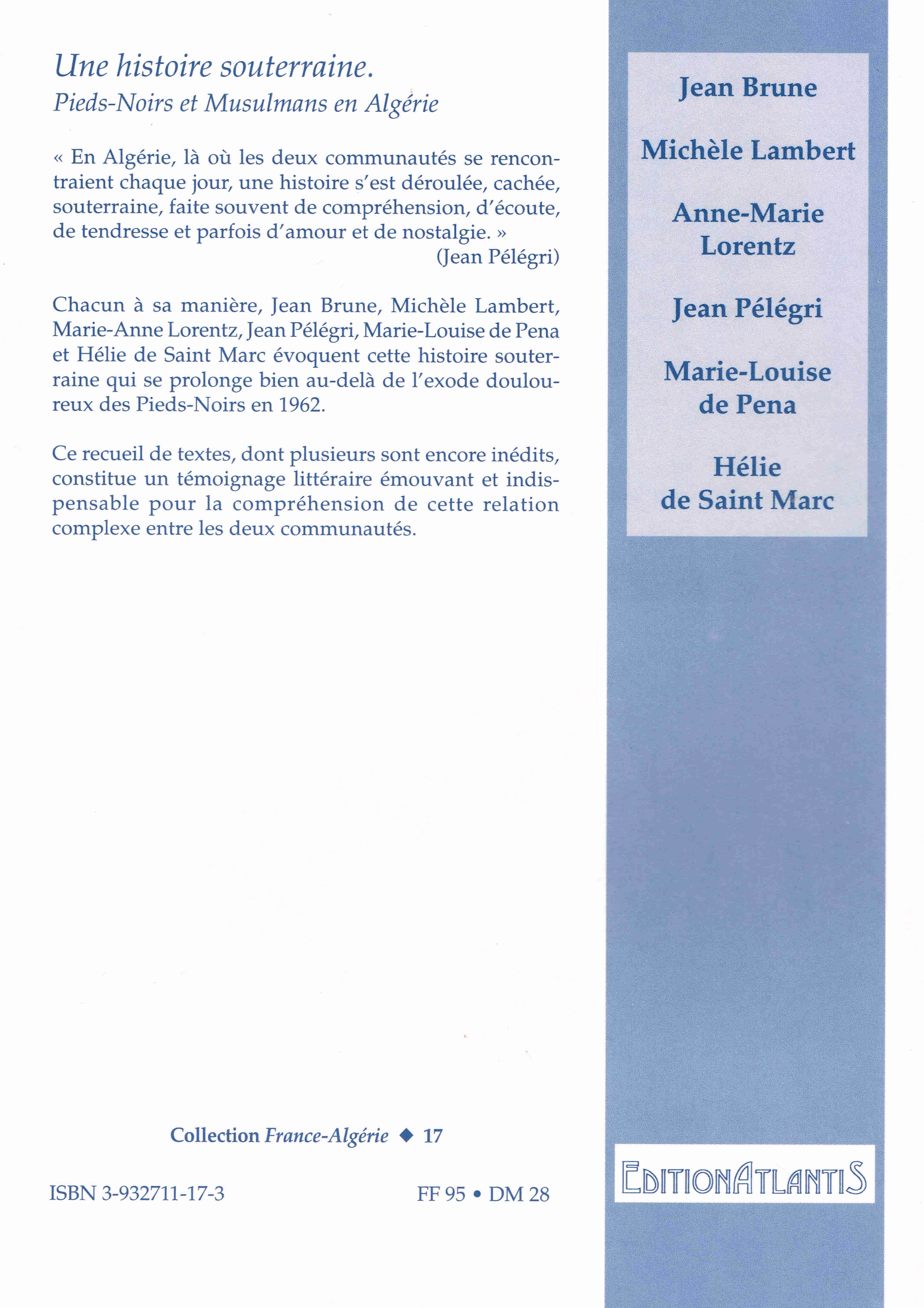 Chacun à sa manière, Jean Brune, Michèle Lambert, Marie-Anne Lorentz, Jean Pélégri, Marie-Louise de Pena et Hélie de Saint Marc évoquent cette histoire souterraine qui se prolonge bien au-delà de l’exode douloureux des Pieds-Noirs en 1962.