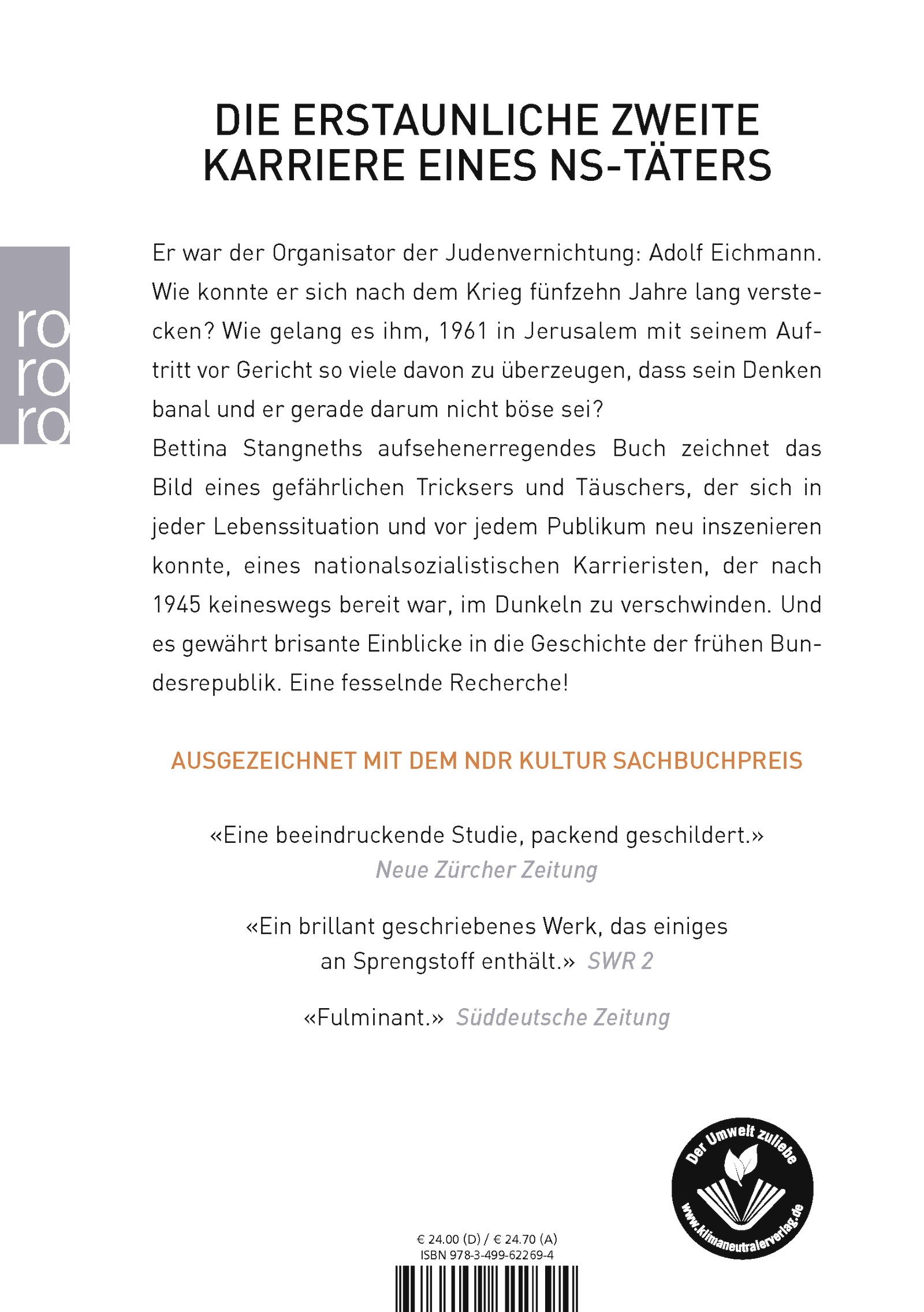 Bettina Stangneths aufsehenerregendes Buch zeichnet das Bild eines gefährlichen Tricksers und Täuschers, der sich in jeder Lebenssituation und vor jedem Publikum neu inszenieren konnte, eines nationalsozialistischen Karrieristen, der nach 1945 keineswegs bereit war, im Dunkeln zu verschwinden. Und es gewährt brisante Einblicke in die Geschichte der frühen Bundesrepublik. Eine fesselnde Recherche!