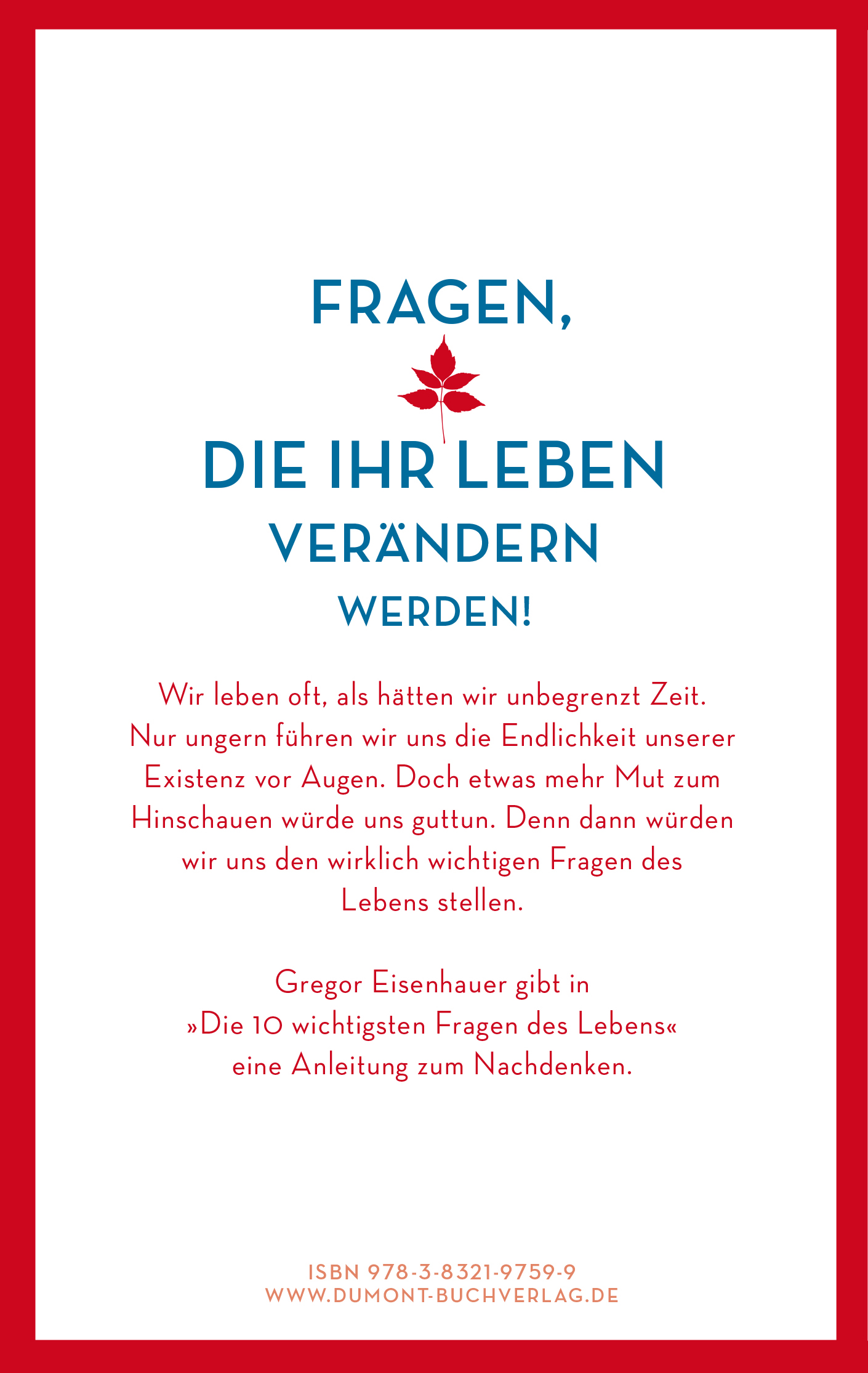 »Ein zeitloses Buch [...] Klar und schnörkellos geschrieben von einem lakonischen Flaneur und Menschenfreund [...] Ein kleines Buch über das Kerngehäuse des Lebens, oft berührend, manchmal melancholisch, erstaunlich heiter.« Werner Bartens, SZ AM WOCHENENDE »[Eisenhauer fragt] lieber als zu antworten; das ist klug, wohl auch zwingend. Man versteht ja nichts ohne Frage - nicht mal Antworten! Und das Buch erzählt lieber, als wuchtig und dunkel zu philosophieren.« Thomas Kapielski, FRANKFURTER ALLGEMEINE ZEITUNG »Die zehn Fragen machen Mut, darüber nachzudenken, worauf es uns im Leben wirklich ankommt.« CHRISMON »Eisenhauer gibt [...] zwar keine Antworten, stellt aber interessante Gegenfragen.« SAARBRÜCKER ZEITUNG »Ein Buch, das zum Nachdenken und Lachen anregt.« Marianne Haring, BUCHBAR »Das beste Buch, das ich je gelesen habe und ständig wieder neu beginne.« Bernhard Gravenkamp, HÖNGGER
