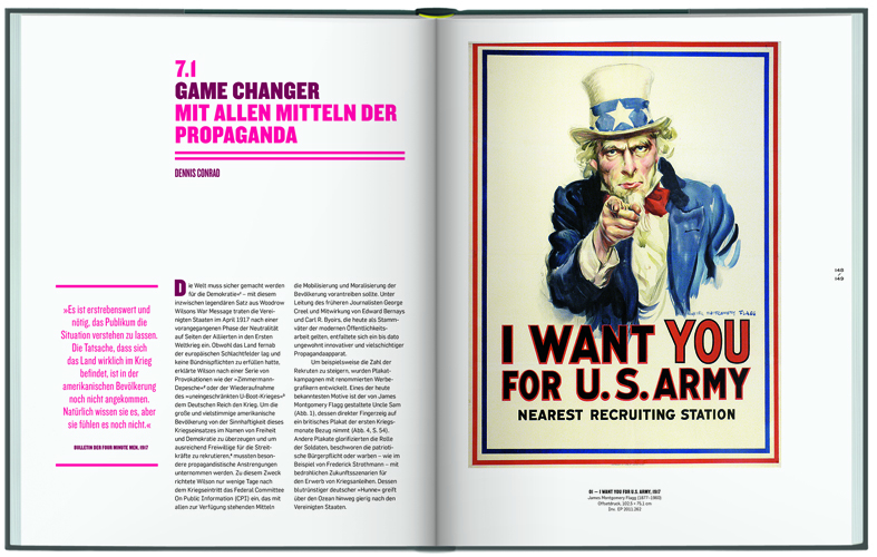 »In Fünf Themenfeldern untersucht der Katalog die Rolle der Propaganda in der Kriegsführung des Ersten Weltkriegs: Die Stichworte lauten Mobilisierung, Dämonisierung, Heroisierung, Authentisierung und Partizipation. Vorgestellt wird anhand zahlreicher sehr guter Bildreproduktionen ein interessanter Querschnitt durch die internationale (nicht nur deutsche) Weltkriegspropaganda. «