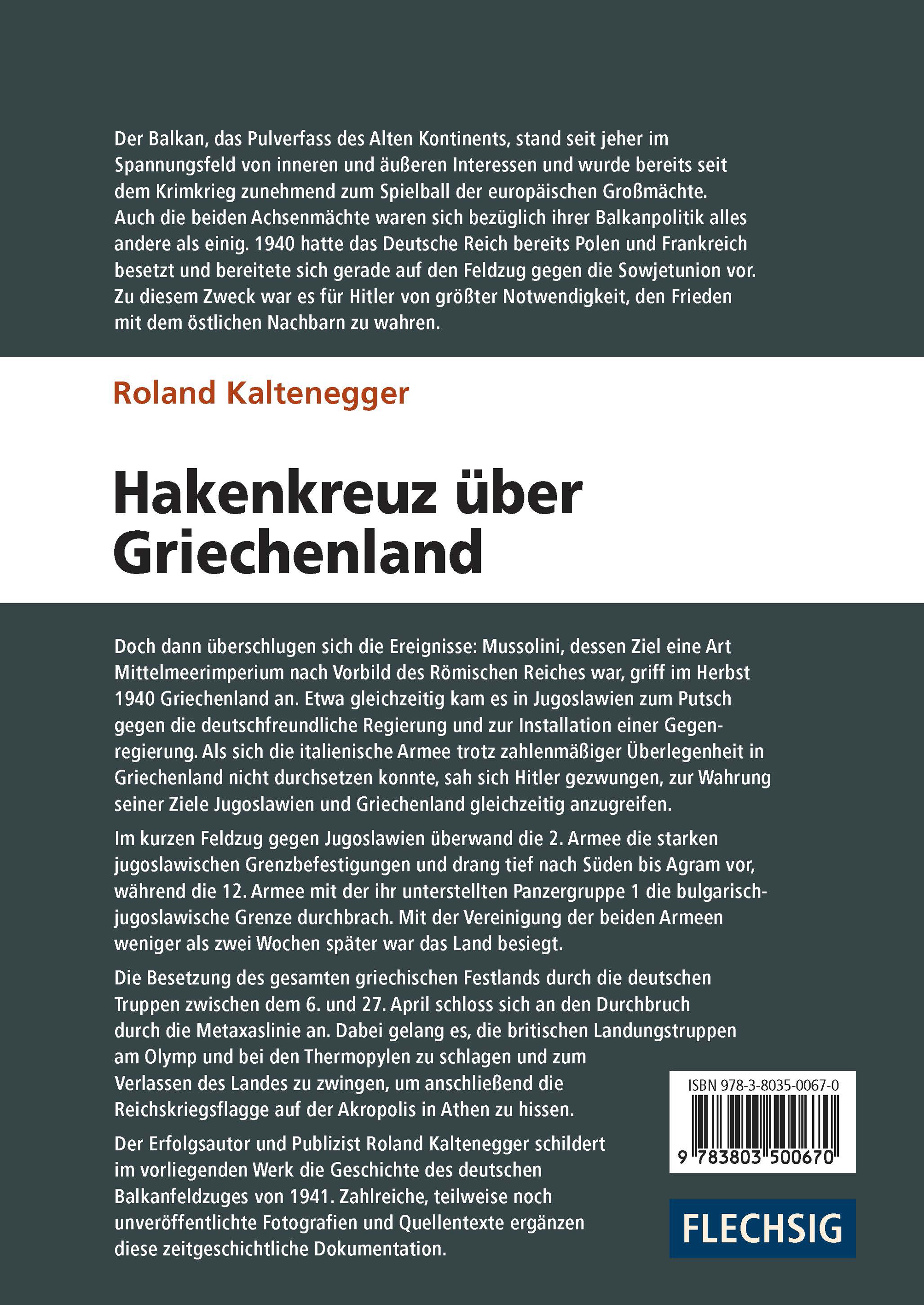Der Erfolgsautor und Publizist Roland Kaltenegger, ein ausgewiesener Spezialist für militärhistorische Themen, schildert im vorliegenden Werk die Geschichte des deutschen Balkanfeldzuges von 1941. Zahlreiche, teilweise noch unveröffentlichte Fotografien und Quellentexte ergänzen diese zeitgeschichtliche Dokumentation.