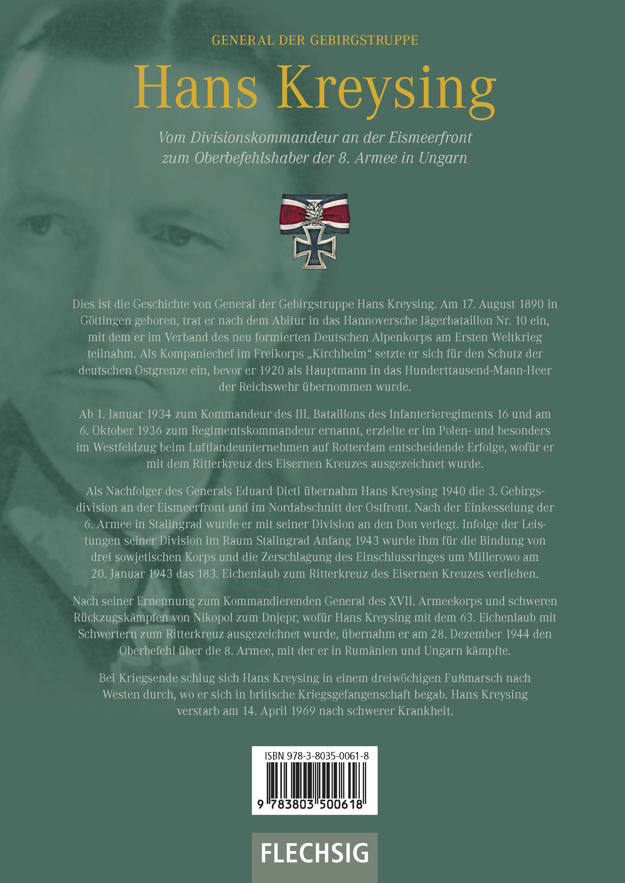 | Schlagworte | 2. Weltkrieg; Biografien • 2. Weltkrieg / Zweiter Weltkrieg; Biografien • Armee • Biografie • Divisionskommandeur • Eduard Dietl • Eichenlaub zum Ritterkreuz • Eismeerfront • Gebirgsarmeekorps • Gebirgsdivision • Gebirgsjäger • Gebirgstruppe • General der Gebirgstruppe • Hans Kreysing • Jägerbataillon • Kommandierender General • Kreysing, Hans • Kriegsgefangenschaft • Norwegen • Norwegenfeldzug • Polenfeldzug • Ritterkreuz • Ritterkreuz (Orden) • Ritterkreuzträger • Tundra • Wehrmacht • Westfeldzug • Zweiter Weltkrieg |