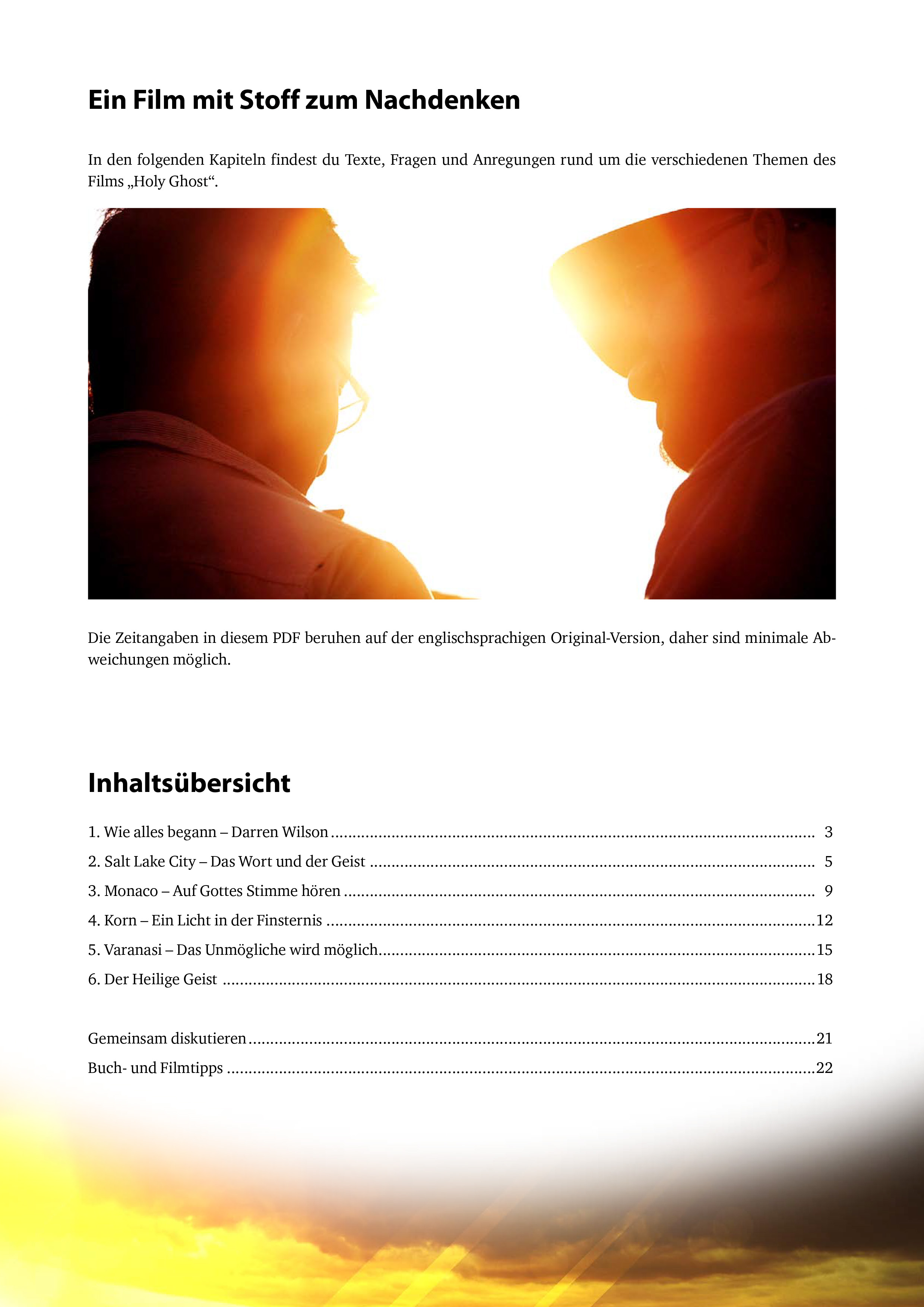 Darren Wilson ist für seine außergewöhnlichen Dokumentarfilme bekannt. In "Zeichen seiner Gegenwart" hinterfragte er noch skeptisch Gottes Zeichen und Wunder. Nach "Zeichen seiner Herrlichkeit" kam er zu dem Schluss, dass Wunder auch heute noch real sind. In "Holy Ghost" lässt er sich nun selbst vom Heiligen Geist leiten und geht an Orte, die ihm gezeigt werden: Monte Carlo, ein Heavy-Metal-Konzert, die heiligste Stadt des Hinduismus. Und an all diesen Orten wird er Zeuge der Zeichen des Heiligen Geistes und damit eines lebendigen Gottes, der mehr Einfluss in dieser Welt hat, als man sich vielleicht vorzustellen vermag.