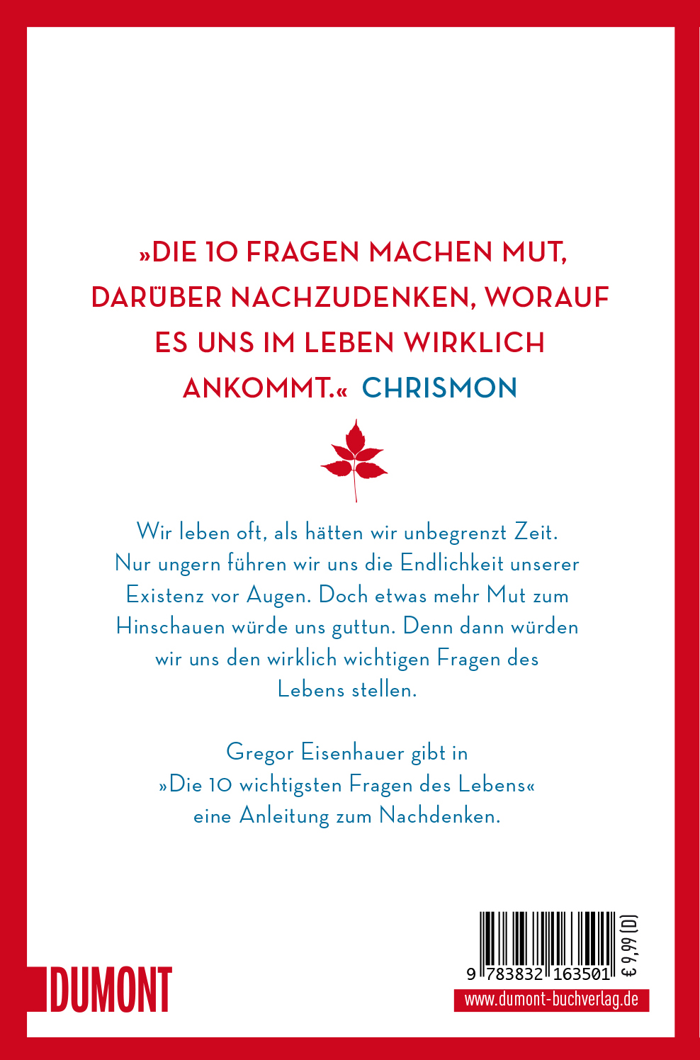 In "Die 10 wichtigsten Fragen des Lebens" ermutigt uns Gregor Eisenhauer Rechenschaft abzulegen - bevor es zu spät ist. Denn es gibt keine Chance, es das nächste Mal besser zu machen.