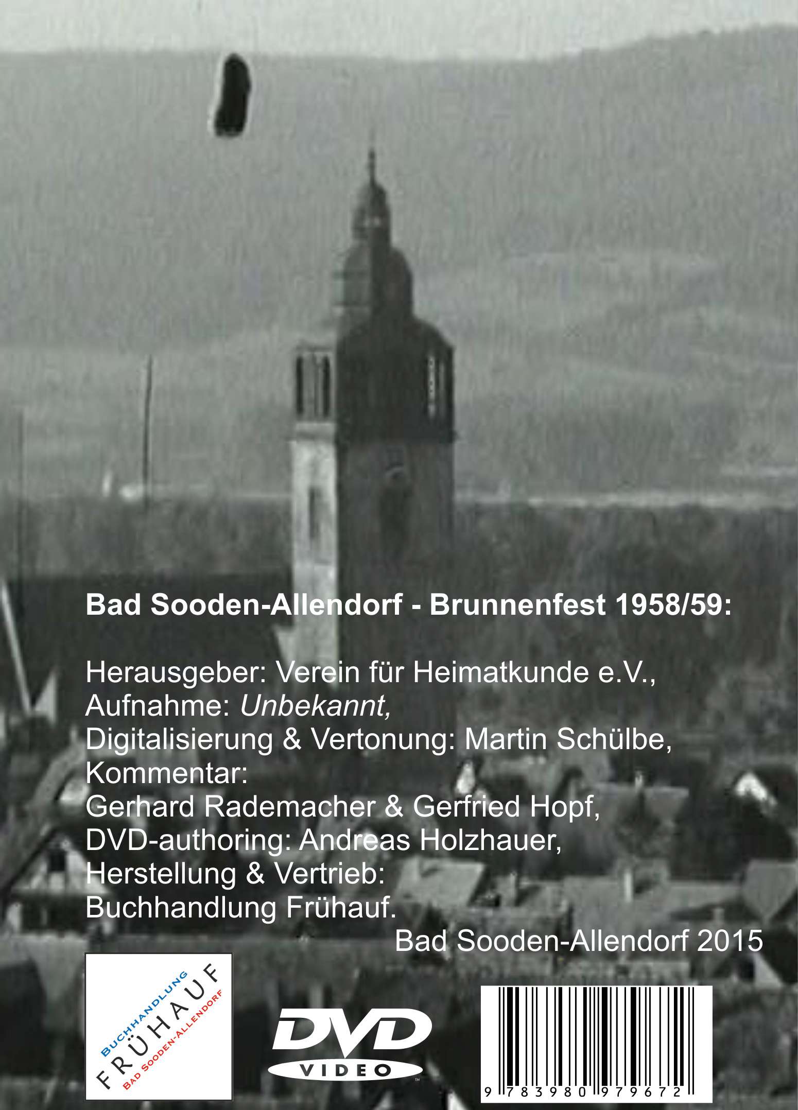 Im Jahre 2010 fand Gerd Rademacher vom Verein für Heimatkunde bei einer Haushaltsauflösung auf dem Dachboden etliche Rollen Super8-Filmmaterials. Diese Orginalaufnahmen, die Bilder aus Bad Sooden-Allendorf und insbesondere von den Brunnenfesten 1958 und 1959 zeigen, wurden digitalisiert und liegen auf dieser DVD nun in einer von Gerd Rademacher und Gerfried Hopf kommentierten Fassung, einer unkommentierten Fassung und einer unbearbeiteten Fassung (Rohfassung) vor. Die Rohfassung zeigt Bilder auch von Ausflügen und vermutlich Klassenfahrten nach Südeuropa, da diese aber nicht zu zuordnen waren, hat sich der Herausgeber für diese drei Varianten (kommentierte, unkommentierte und Roh- Fassung) entschieden.