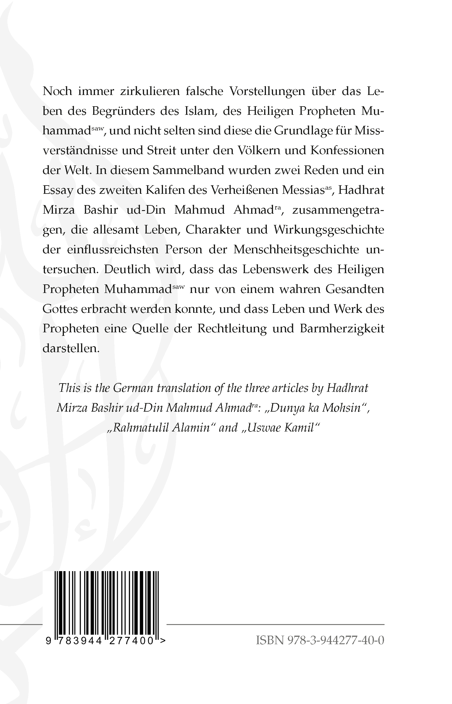 Hadhrat Mirza Bashir ud-Din Mahmud Ahmad (1889-1965), war über fünfzig Jahre lang das Oberhaupt der weltweit organisierten und mehrere zehn Millionen Mitglieder umfassenden islamischen Reformgemeinde Ahmadiyya Muslim Jamaat. Neben der Führungseigenschaften und dem Organisationstalent, das die Basis dafür legte, dass die Gemeinde sich weltweit entfalten konnte, zeichnete er sich in außergewöhnlichem Maße durch seine intellektuellen und spirituellen Fähigkeiten aus. Er genoss keine höhere Bildung im weltlichen Sinne, doch seine denkerischen Fähigkeiten, seine Intelligenz und weitumfassende Weisheit schlagen sich nicht nur in Hunderten von außergewöhnlichen Reden nieder, sondern vor allem auch in seinem verfassten Nachlass. Hervorzuheben sind Abhandlungen über das Wesen Gottes, über den Heiligen Propheten und seinen rechtgeleiteten Kalifen, über die sozialen und ökonomischen Grundlagen im Islam im Vergleich zu westlichen Modellen und vor allem seine reformatorischen Untersuchung und Interpretation des Heiligen Qur-âns, die er auf der Basis von Überlieferungen des Heiligen Propheten und einer logischen und scharfsinnigen Herangehensweise durchführte. Neben seiner spirituellen Einsicht und intellektuellen Schärfe zeichnete sich Hadhrat Mirza Baschir ud-Din Mahmud Ahmad durch sein politisches Engagement zu Zeiten der Teilung des dekolonisierten Subkontinents in Pakistan und Indien aus. Er trug entschiedenen Anteil an der Etablierung Pakistans als souveränen Staaten und leistete wertvolle Dienste als Vorsitzender des All Cashmere Committee, das die Rechte der in Kaschmir lebenden Muslime schützte und dadurch die muslimische Gemeinde vor Unterdrückung bewahrte. Grundsätzlich wurde er aufgesucht von Staatsmännern, die seinen Rat schätzten und sich dadurch Leitung verschafften. Die Reformulierung des ursprünglichen Islam anhand logischer Argumentationstrukturen, die Darstellung der Lehren des Islam in ihrer gesamten gesellschaftsstrukturierenden Tragweite, die rationale Durchdringung von islamischen Geboten und Verboten, die logisch kohärente Formulierung der Grundlage von Moral, all dies formulierte der Hadhrat Mirza Baschir ud-Din Mahmud Ahmad in dutzenden Werken.