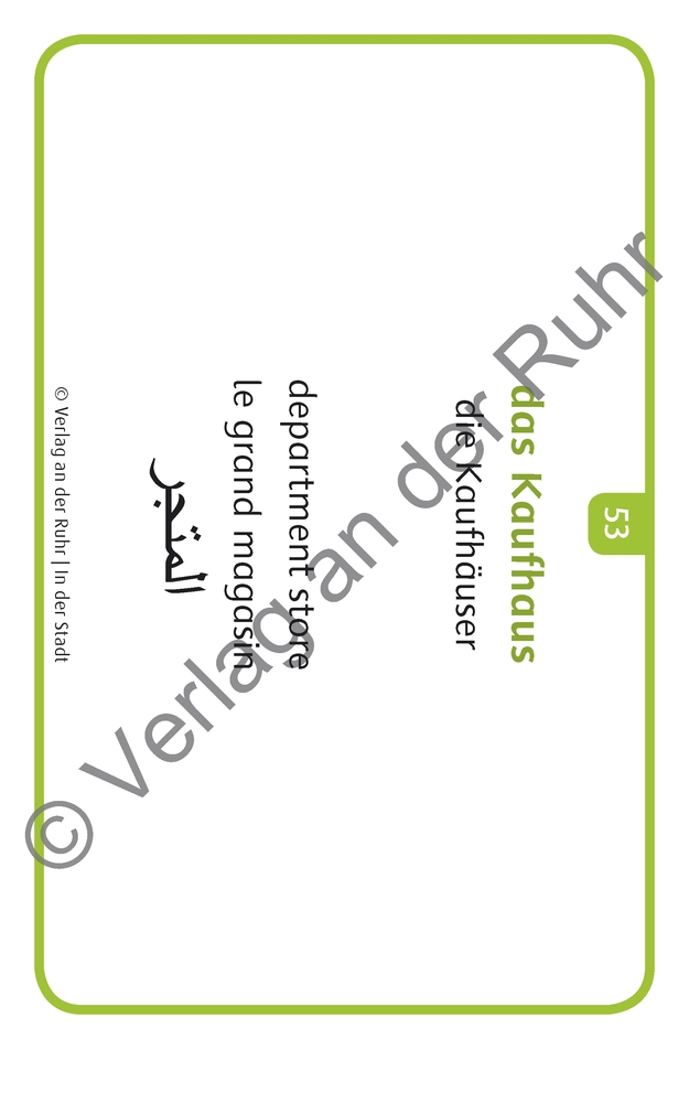 +++Bildkarten für Lehrer und Sprachförderkräfte in der Kita, an Schulen sowie für außerschulische Lehrkräfte, Fach: Sprachförderung, Deutsch als Zweitsprache/Fremdsprache. Für alle Altersstufen; Sprachniveau A1 +++ Herzlich Willkommen! - Welcome! - Bienvenue! - Ahlaan wa sahlaan! Viele Menschen, die z. B. als Flüchtlinge nach Deutschland kommen, sind noch nie mit der deutschen Sprache in Berührung gekommen. Diese Migranten wollen die deutsche Sprache nun in der Regel so schnell wie möglich lernen. Egal ob Kinder oder Erwachsene, ob in Kita oder Schule, im VHS-Kurs, der Flüchtlingshilfe oder zu Hause: Mit diesen flexibel einsetzbaren Bildkarten können Sie Deutschlernern einfach und effektiv helfen. Jedes Set beinhaltet 60 Karten zu den wichtigsten Alltagsbereichen, in denen Sprachkenntnisse besonders nötig sind. Auf der Vorderseite ist jeweils ein Bild von einem Gegenstand dargestellt, auf der Rückseite steht der deutsche Begriff im Singular und Plural mit Artikel. Die Genera sind unterschiedlich farblich markiert. Zusätzlich wird der Begriff in weiteren Sprachen benannt (Englisch, Französisch und Arabisch). Dadurch ergeben sich vielfältige Einsatzmöglichkeiten zum Sprechen und Zuhören. Kurze Anwendungstipps runden das Set ab. Ausführliche Ideen zu Übungen, Spielen u.v.m. finden Sie im zusätzlichen Download. Fotokartenset zu folgendem Thema: - In der Stadt