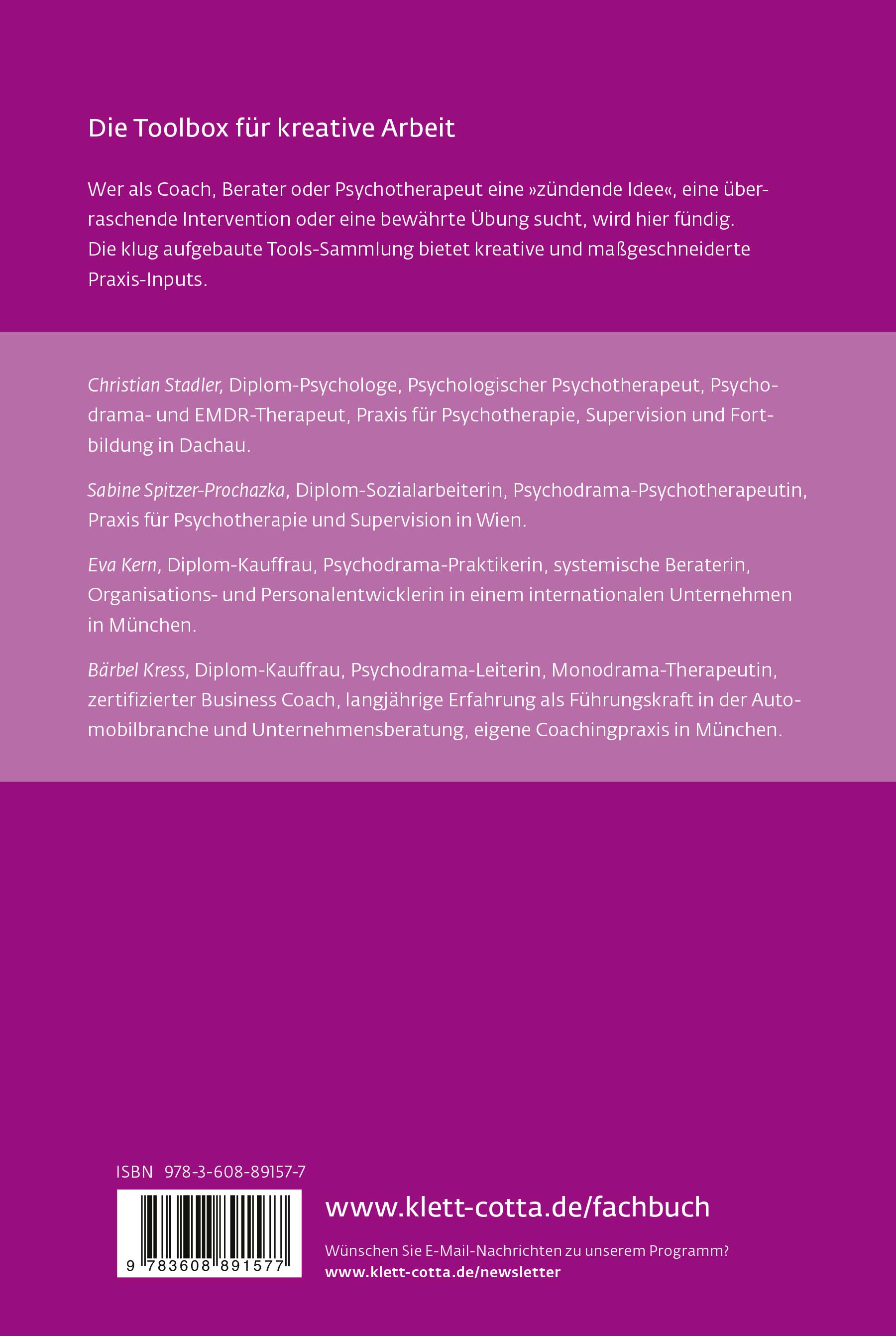 Wer als Coach, Berater oder Psychotherapeut eine »zündende Idee«, eine überraschende Intervention oder eine bewährte Übung sucht, wird hier fündig. Die klug aufgebaute Tools-Sammlung bietet kreative und maßgeschneiderte Praxis-Inputs.