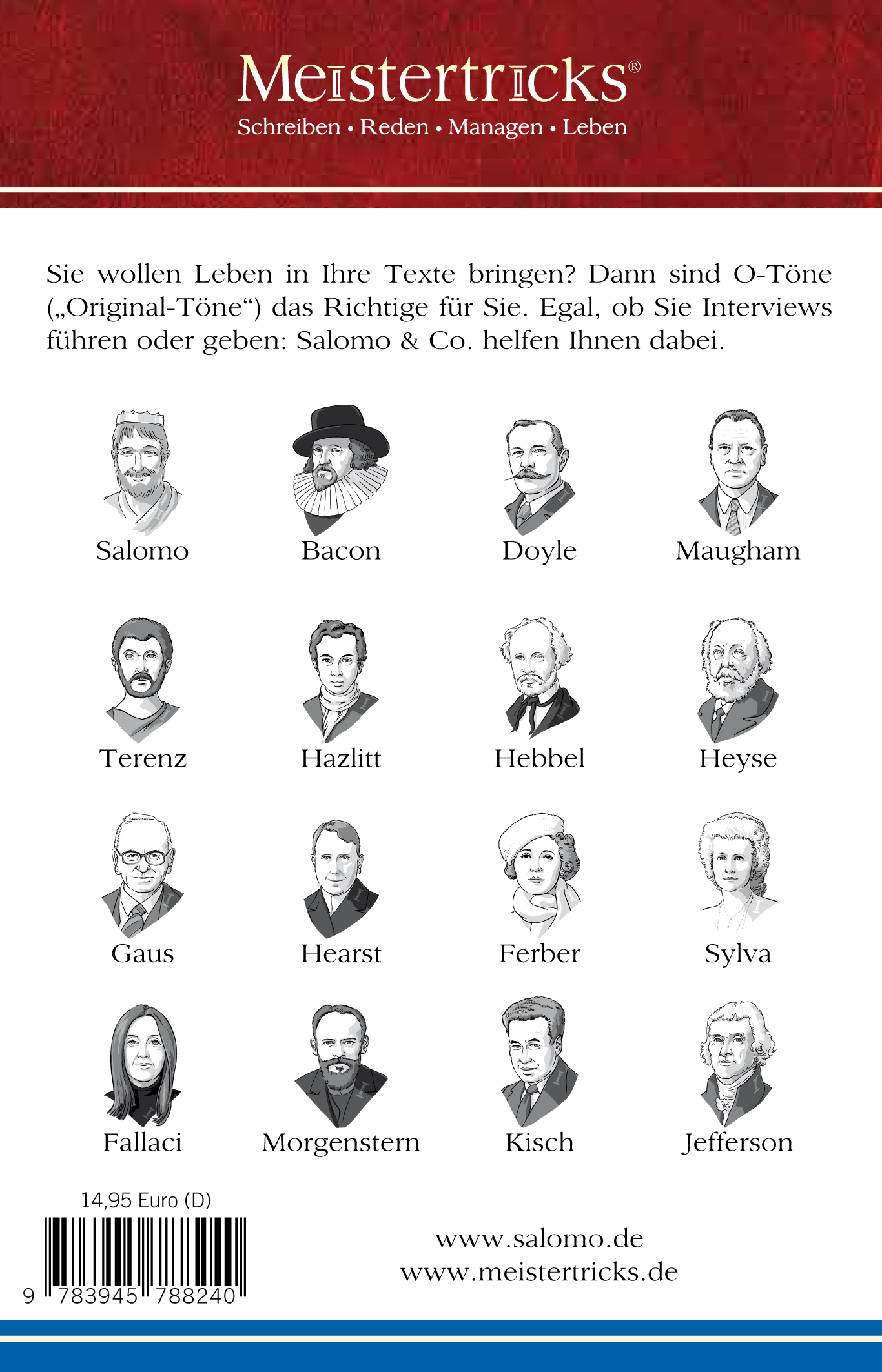 Das waren sie schon, die Meistertricks dieses Buches. Jetzt müssen Sie nur noch wissen, wie sie umzusetzen sind. Das sagen Ihnen Journalisten wie Egon Erwin Kisch und Oriana Fallaci und die Erläuterungen und Beispiele des Herausgebers.