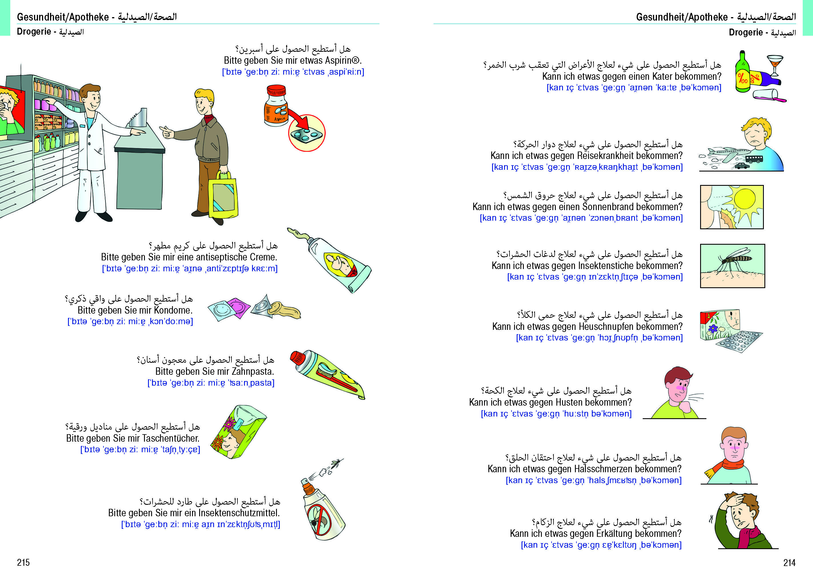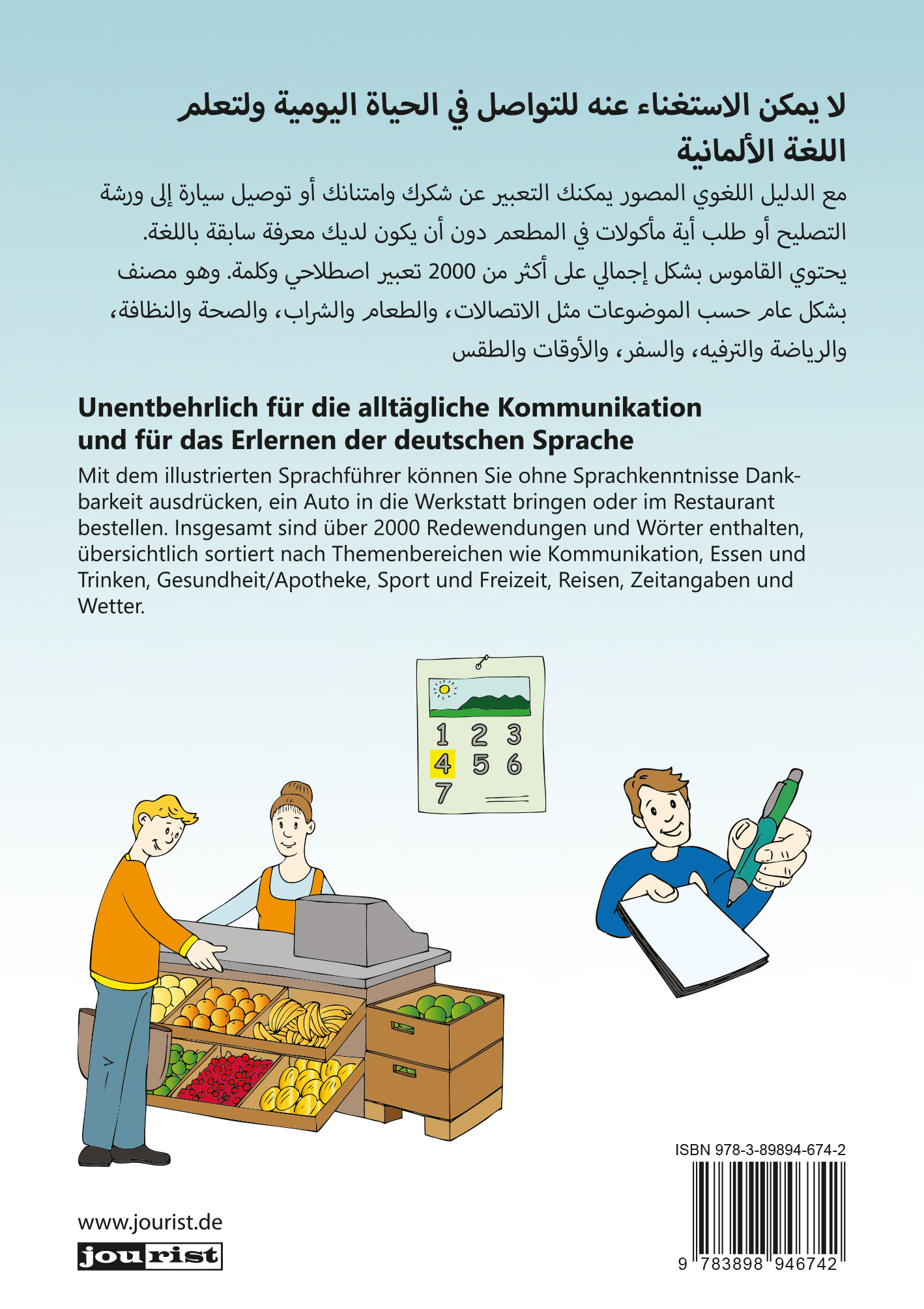 Mit dem illustrierten Sprachführer können Sie ohne Sprachkenntnisse Dankbarkeit ausdrücken, ein Auto in die Werkstatt bringen oder im Restaurant bestellen. Insgesamt sind über 2000 Redewendungen und Wörter enthalten, übersichtlich sortiert nach Themenbereichen wie Kommunikation, Essen und Trinken, Gesundheit und Hygiene, Sport und Freizeit, Reisen, Zeitangaben und Wetter.Das visuelle Lernen stützt sich auf die Tatsache, dass das menschliche Gedächtnis besser funktioniert, wenn es ein Bild vor Augen hat. So kann man sich die Vokabeln und Sätze leichter merken und langfristig einprägen. Die Lautschrift zu allen deutschen Wörtern und Wendungen hilf Ihnen zusätzlich, die korrekte Aussprache zu trainieren. Ebenso unverzichtbar für das erfolgreiche Deutsch-Lernen ist das Anhören der Inhalte. Der auf das Buch perfekt abgestimmte Audiokurs Arabisch - Deutsch in MP3 kann heruntergeladen werden.Den alphabetisch geordneten Wortschatz mit Seitenangaben finden Sie im Register.Und sollten Sie einen Begriff noch nicht gelernt haben, so können Sie Ihrem Gegenüber einfach die passende Abbildung zeigen - so kommen Sie in jeder Situation zurecht!