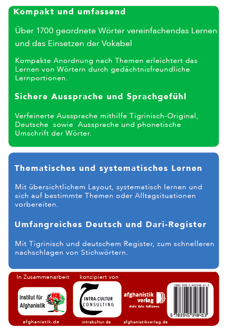 | Zusatzinfo | • 150 Wörter zu über 90 Themen • Kompakt, systematisch und übersichtlich • Tigrinische Transkription der deutschen Vokabeln • Mit Tigrinischem und deutschem Register |