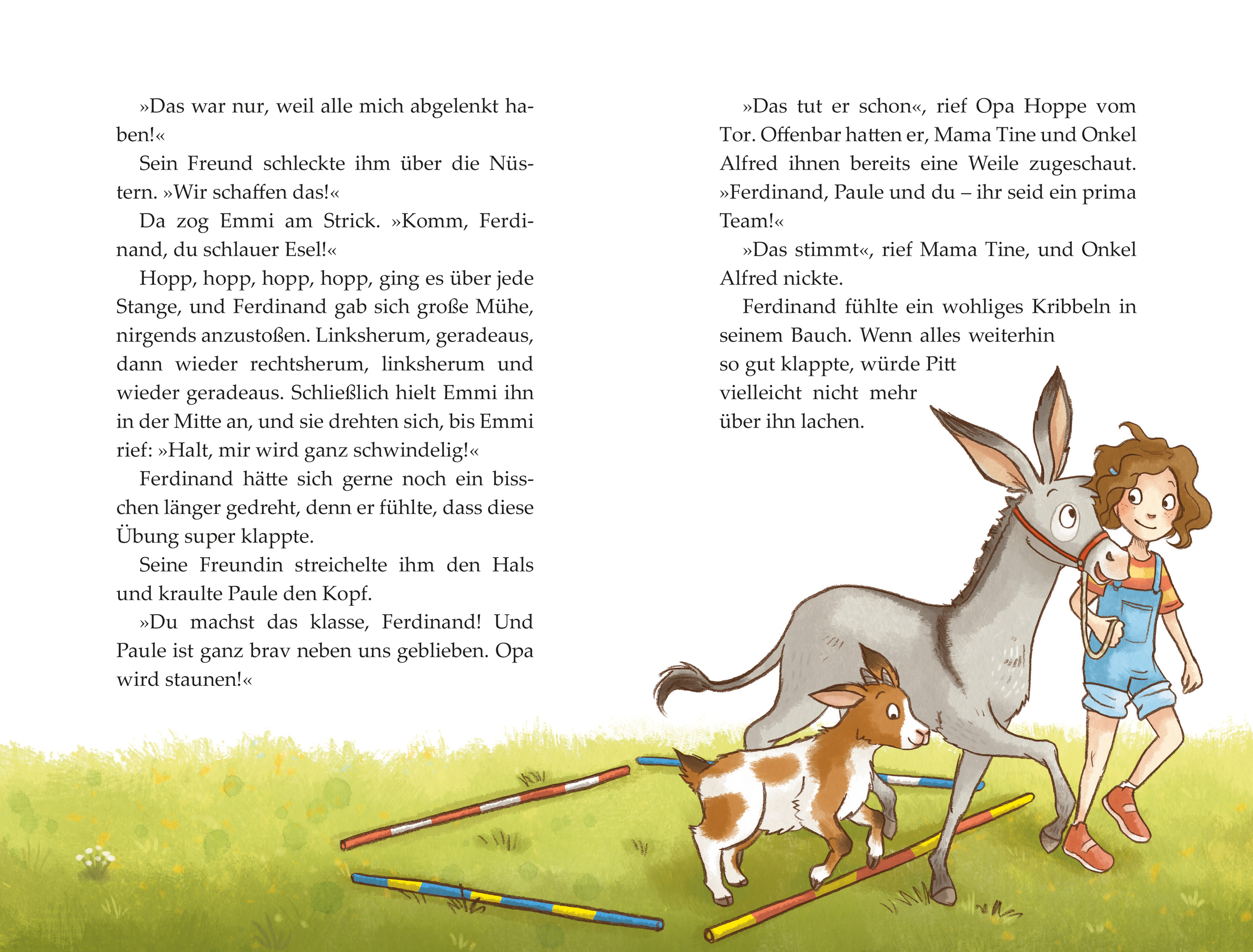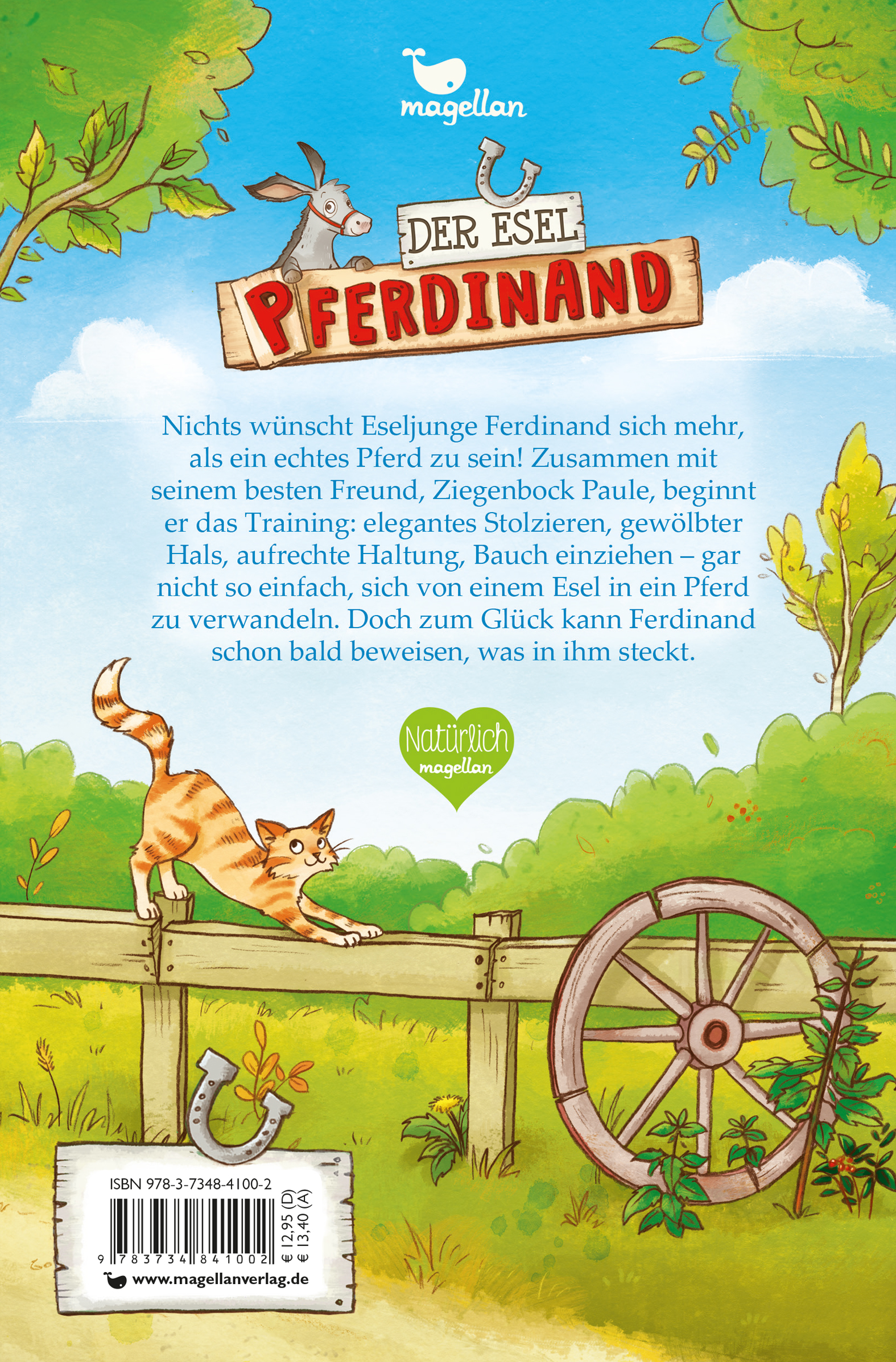 Nichts wünscht Eseljunge Ferdinand sich mehr, als ein echtes Pferd zu sein! Zusammen mit seinem besten Freund, Ziegenbock Paule, beginnt er das Training: elegantes Stolzieren, gewölbter Hals, aufrechte Haltung, Bauch einziehen - gar nicht so einfach, sich von einem Esel in ein Pferd zu verwandeln. Doch schon bald kann Ferdinand allen beweisen, dass er mehr als nur ein niedlicher kleiner Esel ist. Denn zum Glück sind Esel nicht so schreckhaft wie Pferde.