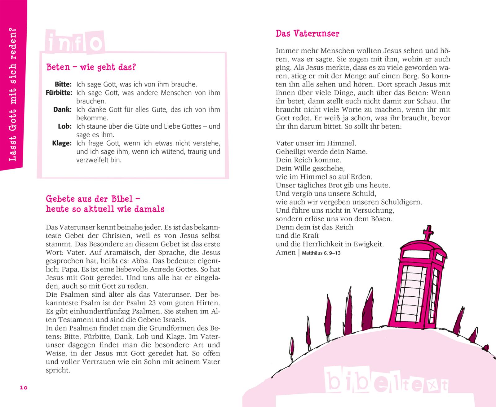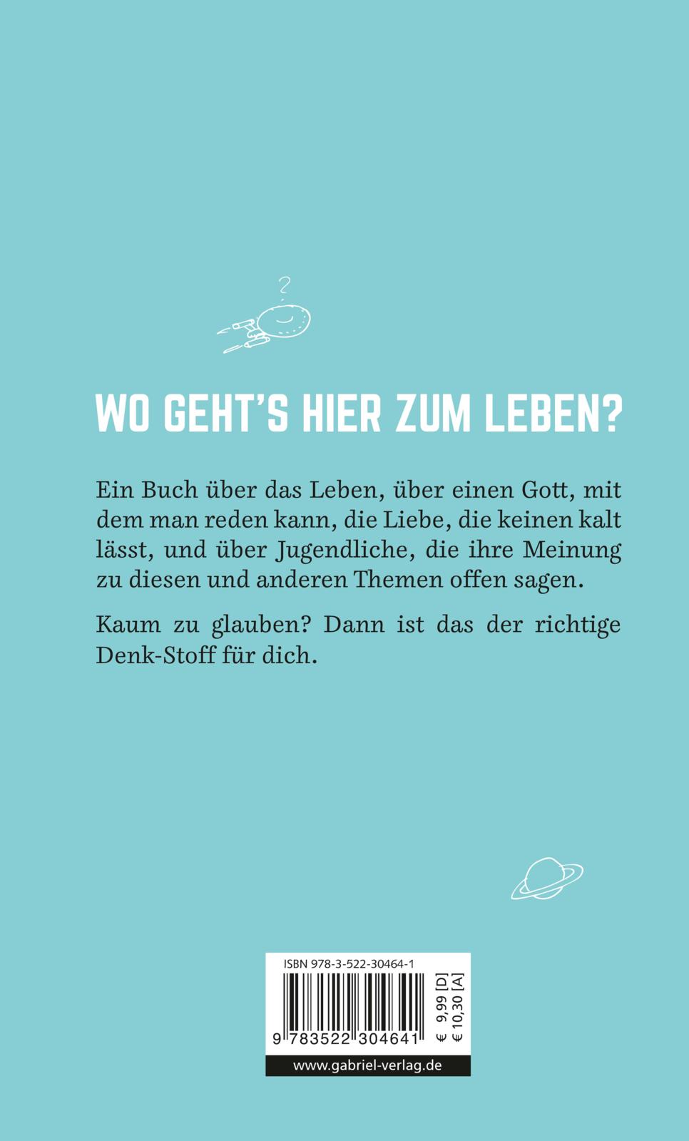 InhaltsverzeichnisLässt Gott mit sich reden?Wozu Beten gut istFest oder Frust?Warum wir Weihnachten feiern Starker Typ, aber mausetot?Jesus von Nazaret Einmalig – Ich?Wie Gott dich sieht Warum musst du mich immer nerven?Geschwistergeschichten Einmal so klug wie Gott?Von der Sehnsucht, alles zu wissenAlter Mann mit Rauschebart?Gottesbilder Wer braucht schon Regeln?Die Zehn Gebote Alles Gute kommt von oben?Was Segen bedeutet Besser als ihr Ruf?Die Kirche Warum gerade ich?Vom Sinn des Helfens War’s das?Der Tod und was danach kommt Was heißt hier Liebe?Die Tücken von Thema Nr. 1 Kaum zu glauben?Warum dein Standpunkt wichtig ist