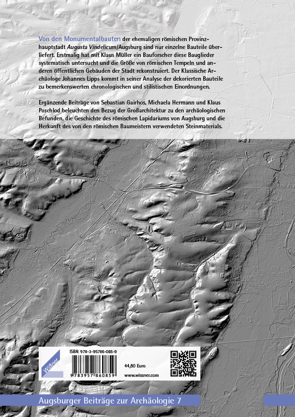 Von den Monumentalbauten der ehemaligen römischen Provinzhauptstadt Augusta Vindelicum/Augsburg sind nur einzelne Bauteile überliefert. Erstmalig hat mit Klaus Müller ein Bauforscher diese Bauglieder systematisch untersucht und die Größe von römischen Tempeln und anderen öffentlichen Gebäuden der Stadt rekonstruiert. Der Klassische Archäologe Johannes Lipps kommt in seiner Analyse der dekorierten Bauteile zu bemerkenswerten chronologischen und stilistischen Einordnungen.Ergänzende Beiträge von Sebastian Gairhos, Michaela Hermann und Klaus Poschlod beleuchten den Bezug der Großarchitektur zu den archäologischen Befunden, die Geschichte des römischen Lapidariums von Augsburg und die Herkunft des von den römischen Baumeistern verwendeten Steinmaterials.