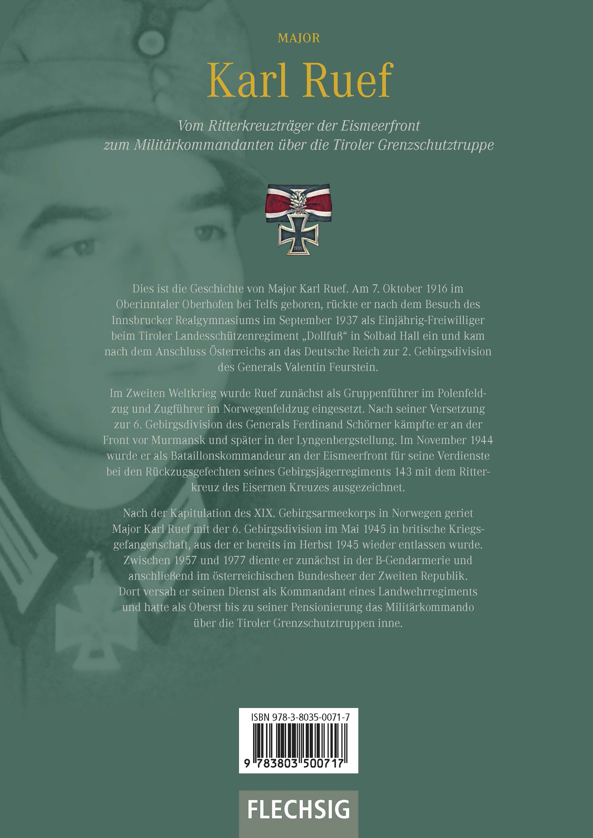 Dies ist die Geschichte von Major Karl Ruef. Am 7. Oktober 1916 im Oberinntaler Oberhofen bei Telfs geboren, rückte er nach dem Besuch des Innsbrucker Realgymnasiums im September 1937 als Einjährig-Freiwilliger beim Tiroler Landesschützenregiment "Dollfuß" in Solbad Hall ein und kam nach dem Anschluss Österreichs an das Deutsche Reich zur 2. Gebirgsdivision des Generals Valentin Feurstein.