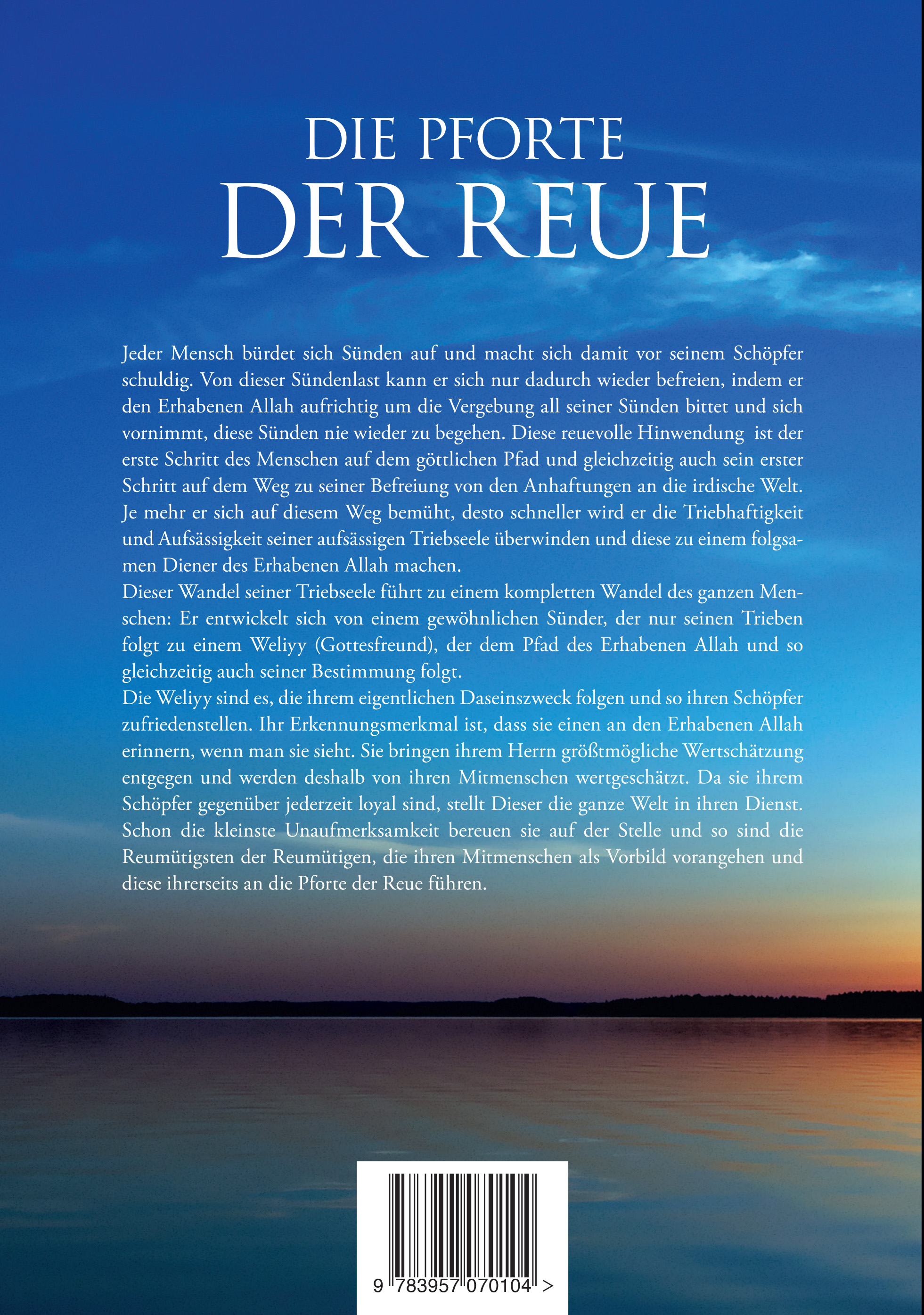 Jeder Mensch bürdet sich Sünden auf und macht sich damit vor seinem Schöpferschuldig. Von dieser Sündenlast kann er sich nur dadurch wieder befreien, indem er den Erhabenen Allah aufrichtig um die Vergebung all seiner Sünden bittet und sich vornimmt, diese Sünden nie wieder zu begehen. Diese reuevolle Hinwendung ist der erste Schritt des Menschen auf dem göttlichen Pfad und gleichzeitig auch sein erster Schritt auf dem Weg zu seiner Befreiung von den Anhaftungen an die irdische Welt. Je mehr er sich auf diesem Weg bemüht, desto schneller wird er die Triebhaftigkeit und Aufsässigkeit seiner aufsässigen Triebseele überwinden und diese zu einem folgsamen Diener des Erhabenen Allah machen.Dieser Wandel seiner Triebseele führt zu einem kompletten Wandel des ganzen Menschen: Er entwickelt sich von einem gewöhnlichen Sünder, der nur seinen Trieben folgt zu einem Weliyy (Gottesfreund), der dem Pfad des Erhabenen Allah und so gleichzeitig auch seiner Bestimmung folgt.Die Weliyy sind es, die ihrem eigentlichen Daseinszweck folgen und so ihren Schöpfer zufriedenstellen. Ihr Erkennungsmerkmal ist, dass sie einen an den Erhabenen Allah erinnern, wenn man sie sieht. Sie bringen ihrem Herrn größtmögliche Wertschätzung entgegen und werden deshalb von ihren Mitmenschen wertgeschätzt. Da sie ihrem Schöpfer gegenüber jederzeit loyal sind, stellt Dieser die ganze Welt in ihren Dienst. Schon die kleinste Unaufmerksamkeit bereuen sie auf der Stelle und so sind die Reumütigsten der Reumütigen, die ihren Mitmenschen als Vorbild vorangehen und diese ihrerseits an die Pforte der Reue führen.