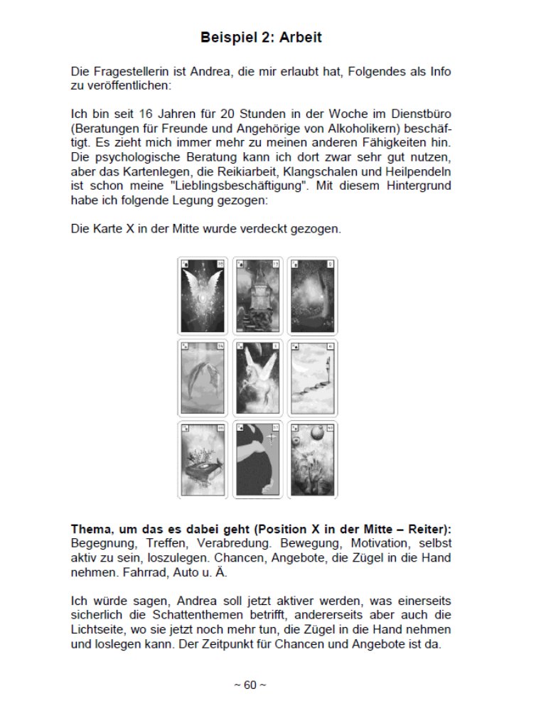 Als Deutungshilfe gibt es jede Karte auf allen 8 Positionen erklärt und zum Nachlesen und dann vor allem auch Nachmachen gedacht.