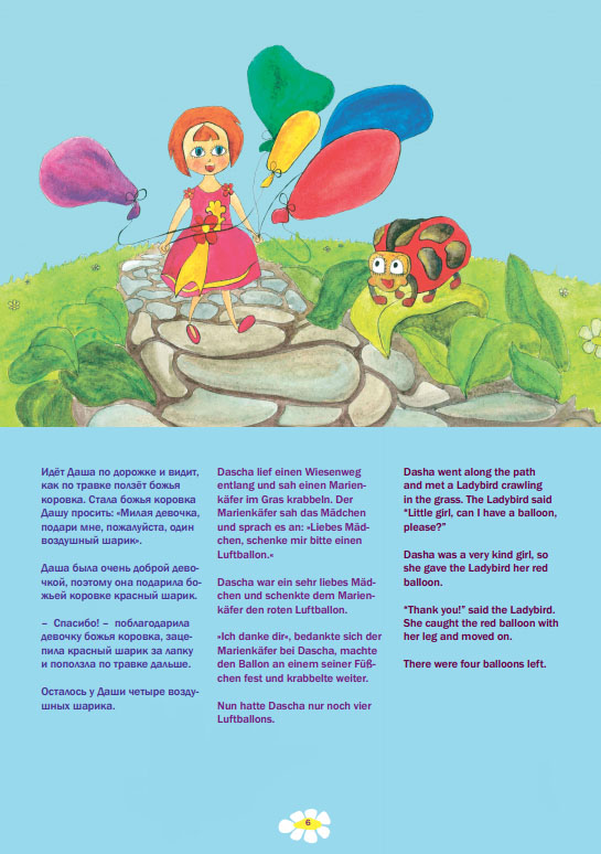 Dies ist ein besonderes Vorlesebuch: Es erzählt nicht nur die Geschichte von Dascha – es ist auch ein Spielbuch. Wie lernen kleine Kinder? Durch Wiederholung! Die Wiederholung von Handlungen in gleichen oder ähnlichen Situationen hilft ihnen, bestimmte Inhalte und Techniken schnell zu erlernen. Deswegen werden in diesem Buch die Bezeichnungen der Farben mehrmals wiederholt. Außerdem wiederholt sich das Wort »Danke« in der Geschichte, damit die Kinder lernen, dieses höfliche Wort zu benutzen.