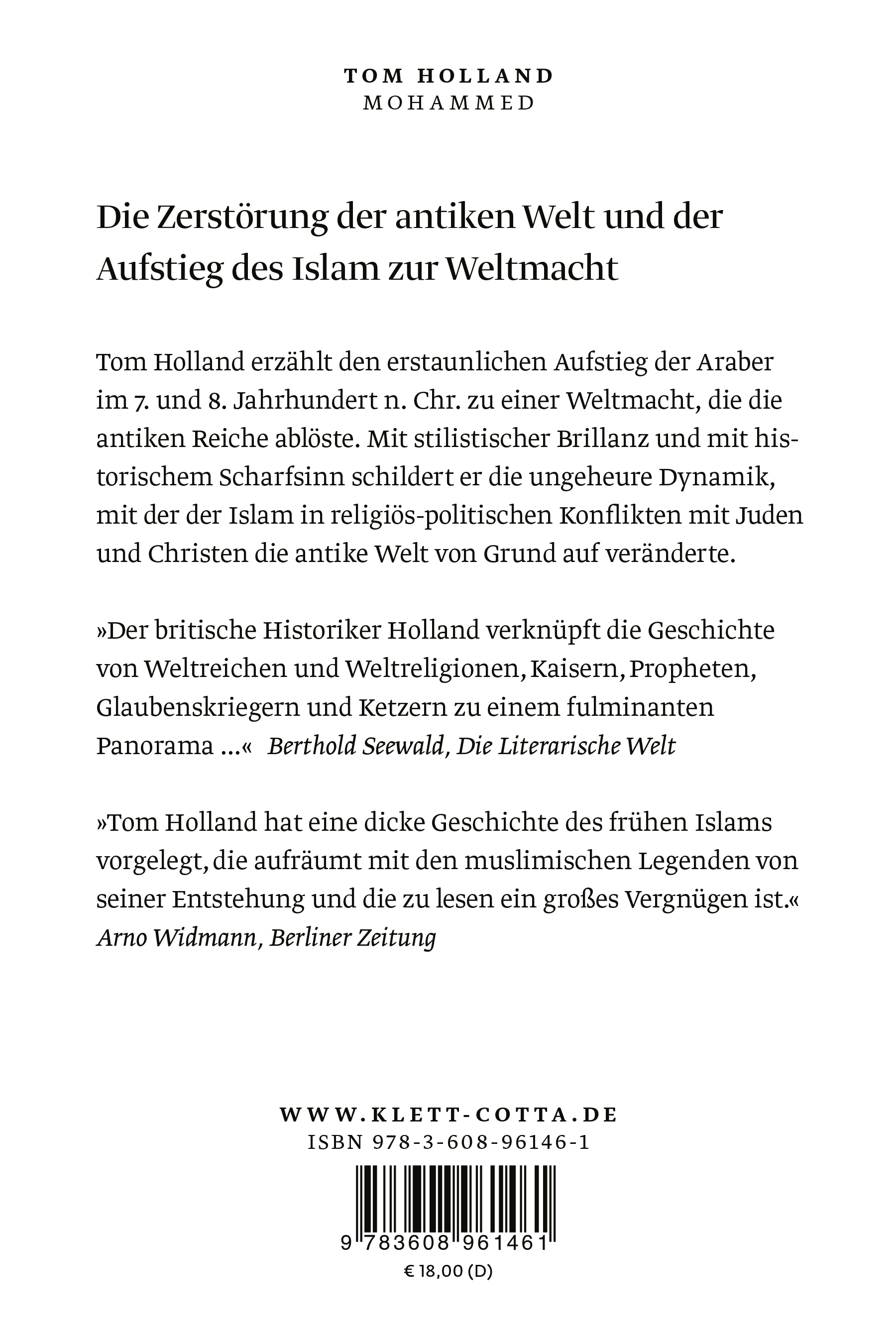 »Dieses schwungvolle Buch ... handelt davon, dass die Offenbarungen der großen Buchreligionen nicht nur vom Himmel, sondern auch aus der Erde kommen, aus dem historischen Boden und den metaphysischen Hoffnungen ihrer Entstehungszeit. Die cleveren Siegelbewahrer und Ausdeuter der heiligen Schriften, die Kirchenväter, Rabbis und Ulamas, haben das immer gewusst; aber sie haben wohlweislich sich davor gehütet, ihr Wissen der Nachwelt weiterzugeben. Die Aufgabe des Historikers liegt darin, es wieder auszugraben. Das ist Tom Holland gelungen.« Andreas Kilb, Frankfurter Allgemeine Zeitung, 06.10.2012 Andreas Kilb FAZ 20121006