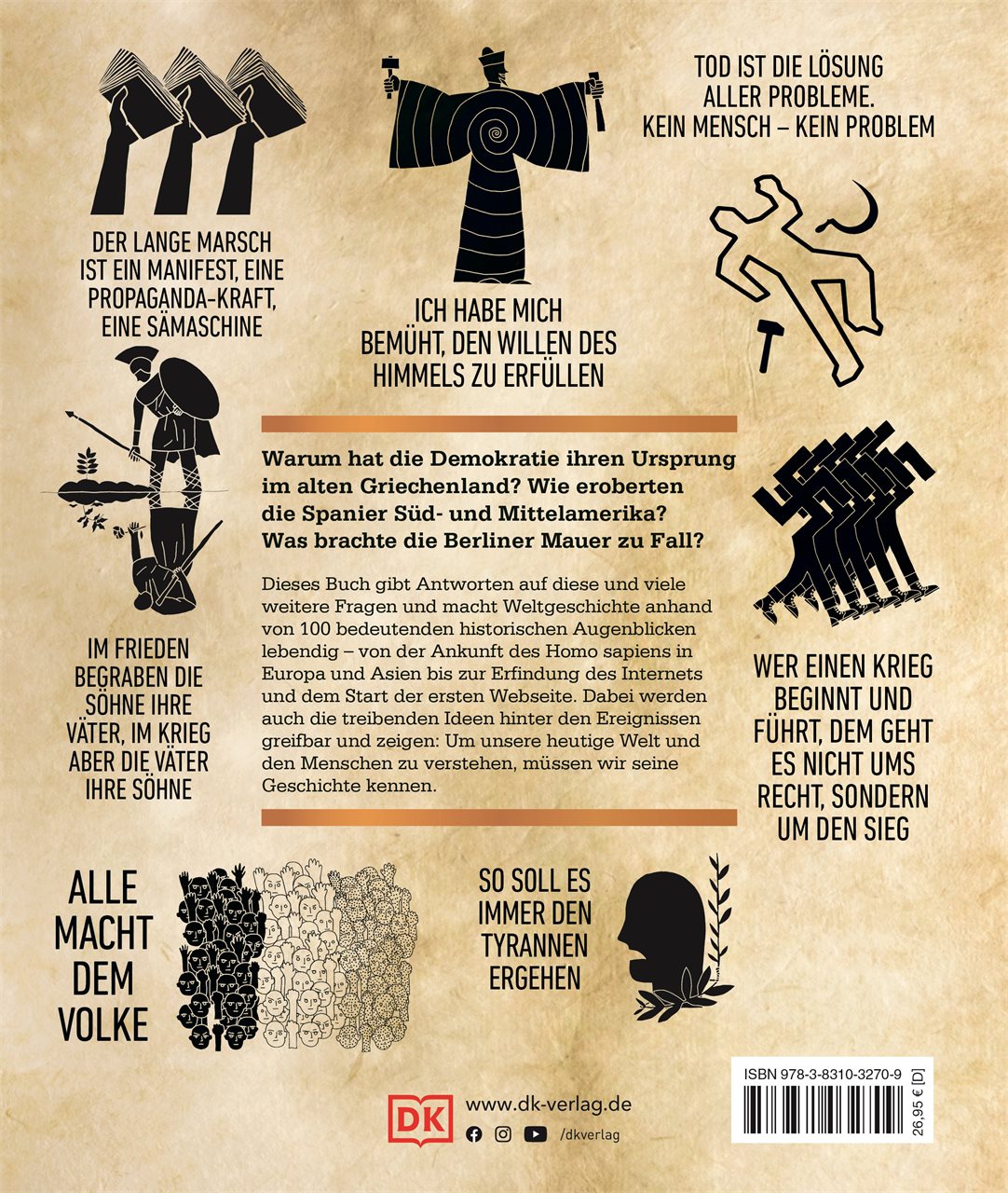 Ob die Ermordung Julius Cäsars, Luthers Thesen von 1517 oder die Erfindung des Internets – auf diesen Seiten finden Sie die wichtigsten geschichtlichen Fakten versammelt auf den Punkt gebracht und ansprechend visualisiert durch zahlreiche Fotos, Diagramme und Piktogramme. Hier werden keinen trockenen Daten oder Jahreszahlen aufgezählt, sondern Sie erfahren auch die Hintergründe und treibenden Ideen hinter einzelnen prägenden Ereignissen der Vergangenheit. Alles andere als verstaubt - erweitern Sie mit diesem schlauen Schmöker nicht nur Ihr Verständnis für historische Zusammenhänge sondern auch für unsere heutige Welt und die Menschen!