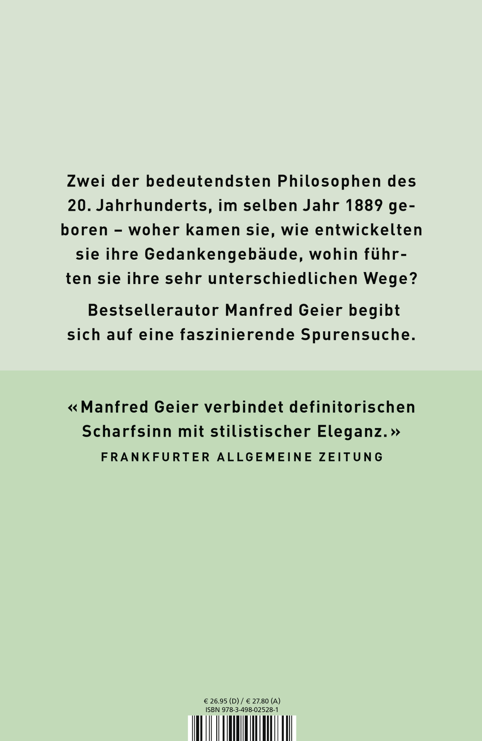 Bestsellerautor Manfred Geier geht den Biographien der beiden Denker nach und beschreibt, wie andersartig ihre Lebenswege waren und wie divergierend ihre Gedanken sich entwickelten. «Sein und Zeit» hieß der Hauptwerk des einen, «Tractatus logico-philosophicus» das des anderen Autors. Während Heideggers Denken im Verlauf seines Lebens immer allgemeiner und abstrakter wurde, das Dasein hinter sich ließ und das «Sein» selbst zur Sprache bringen wollte, begann Wittgenstein, sich immer genauer und differenzierter den alltäglichen Sprachgebrauch anzuschauen und in den Zusammenhang menschlicher Lebensformen einzubinden.
