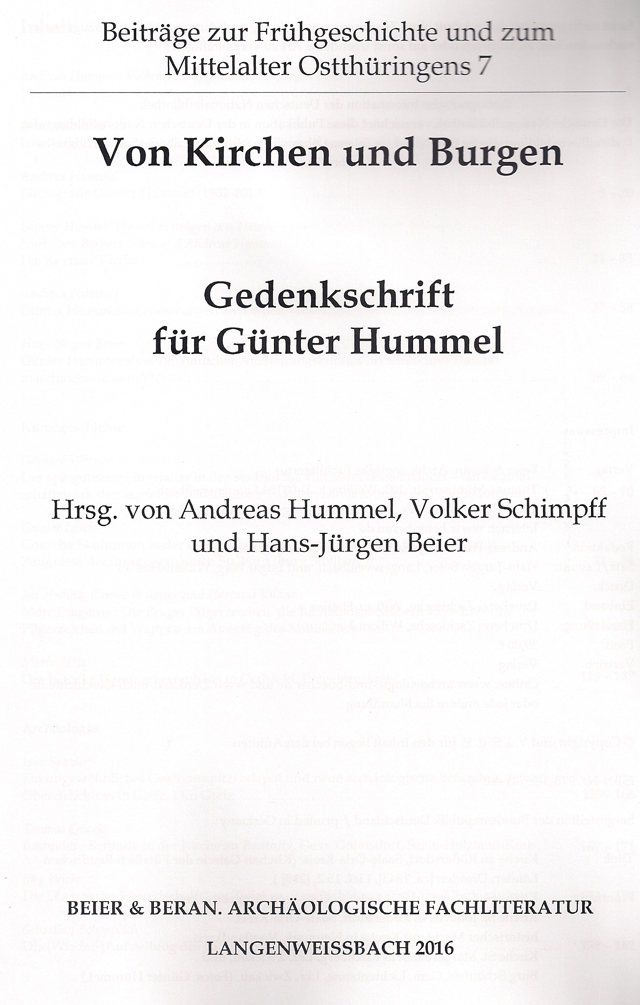Die nachfolgenden Beiträge spiegeln sein persönliches und wissenschaftliches Umfeld wider. Sie sollen daher in erster Linie als Fortsetzung der Erforschung der thüringischen und sächsischen Sakral- und Burgenlandschaft verstanden werden. Ähnlich seinen Interessen verteilen sich auch die Themenschwerpunkte dieser Gedenkschrift auf die Gebiete Kunstgeschichte, Archäologie, Bauforschung und Geschichte. Sie sind in einem Band der "Beiträge zur Frühgeschichte und zum Mittelalter Ostthüringens" versammelt, einer Reihe, in der Günter Hummel in jedem Buch mit einem Aufsatz vertreten ist. Mögen sie dazu beitragen, dass er nicht nur als Vater und Lehrer, als guter Freund und Weggefährte und als wissensstarker, freundlicher und gänzlich unkomplizierter Kollege vermisst, sondern dass er auch in weiteren Fachkreisen nicht vergessen wird. (Vorwort)