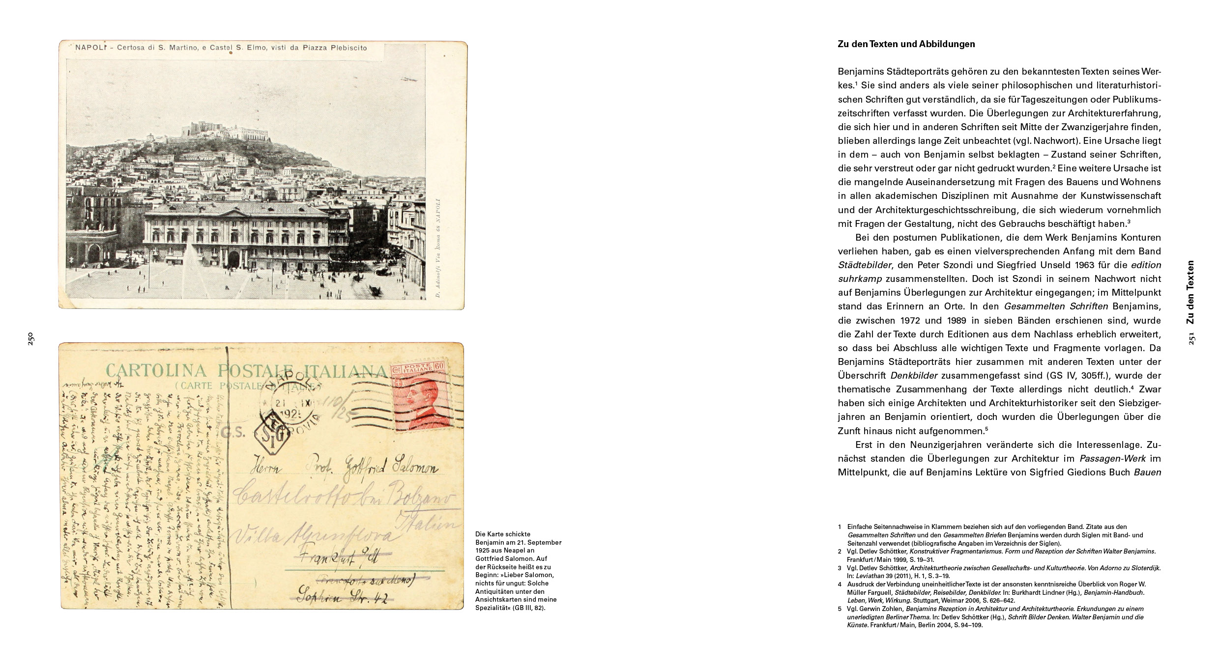 Der Philosoph, Kulturtheoretiker und Schriftsteller Walter Benjamin (1892 - 1940) ist nicht nur viel gereist, sondern blieb oft längere Zeit an unterschiedlichen Orten. Paris, Marseille, Neapel, Capri, Ibiza, Moskau und Riga sind einige dieser Stationen. Seine Beobachtungen hat der Autor seit 1925 in Berichten und Essays für Zeitungen und Zeitschriften verarbeitet, in deren Mittelpunkt die Frage steht, wie Menschen in umbauten Räumen, vor allem auf Plätzen und Straßen, zusammenleben. Die Städteporträts gehören zu den bekanntesten Texten Benjamins. In diesem Band werden sie erstmals als Einheit vorgelegt und mit zahlreichen zeitgenössischen Ansichtskarten illustriert, die zum Teil von Benjamin an Freunde geschickt wurden oder aus seiner Sammlung stammen.Mit erläuternden Kommentaren sowie einem Nachwort des Herausgebers zum Stellenwert von Architektur und städtischem Leben in Walter Benjamins Denken und Schriften.