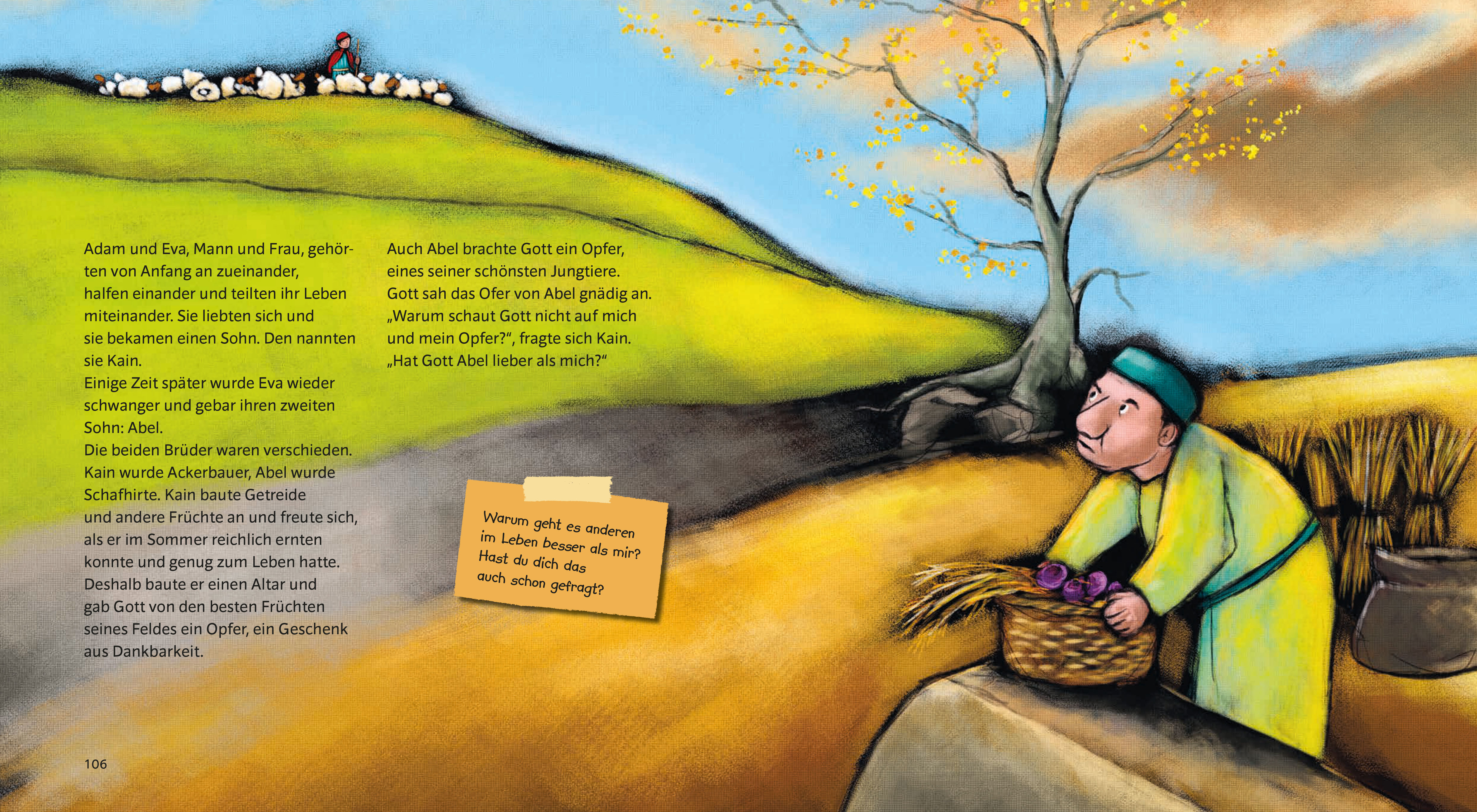 Kinder sind Meister im Fragenstellen. Themen wie Krankheit, Tod, Krieg, Freundschaft usw., sind für Erwachsene oft nicht so leicht zu beantworten. Ausgehend von solchen Fragen werden ausgewählte biblische Geschichten einfühlsam und anschaulich nacherzählt und liebevoll und farbenfroh illustriert. Mitmachideen zum Basteln, Singen, Malen und Nachspielen laden dazu ein, sich großen Lebensthemen kindgerecht zu nähern. Beide Autorinnen arbeiten als Seelsorgerinnen in einem Kinderkrankenhaus und sind mit den Fragen und Sorgen der Kinder vertraut.-für Kinder ab der 3./4. Klasse-zum Vor- und Selberlesen-14 biblische Geschichten aus dem Alten und Neuen Testament-mit vielen eindrucksvollen Illustrationen