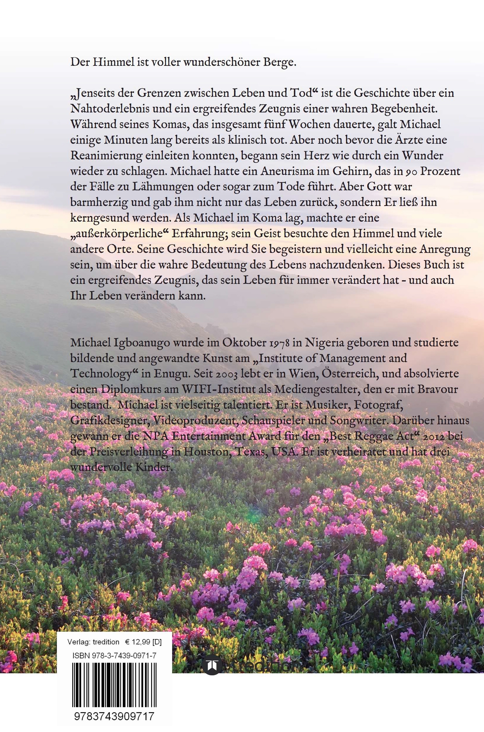 Der Himmel ist voller wunderschöner Berge."Jenseits der Grenzen zwischen Leben und Tod" ist die Geschichte über ein Nahtoderlebnis und ein ergreifendes Zeugnis einer wahren Begebenheit. Während seines Komas, das insgesamt fünf Wochen dauerte, galt Michael einige Minuten lang bereits als klinisch tot. Aber noch bevor die Ärzte eine Reanimierung einleiten konnten, begann sein Herz wie durch ein Wunder wieder zu schlagen. Michael hatte ein Aneurisma im Gehirn, das in 90 Prozent der Fälle zu Lähmungen oder sogar zum Tode führt. Aber Gott war barmherzig und gab ihm nicht nur das Leben zurück, sondern Er ließ ihn kerngesund werden. Als Michael im Koma lag, machte er eine "außerkörperliche" Erfahrung; sein Geist besuchte den Himmel und viele andere Orte. Seine Geschichte wird Sie begeistern und vielleicht eine Anregung sein, um über die wahre Bedeutung des Lebens nachzudenken. Dieses Buch ist ein ergreifendes Zeugnis, das sein Leben für immer verändert hat - und auch Ihr Leben verändern kann.