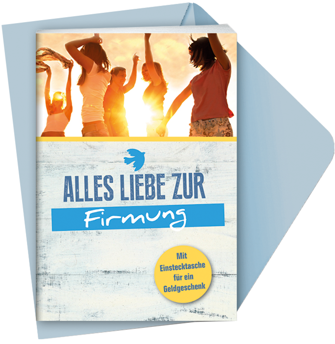 Dieses Büchlein zur Firmung bietet Platz für eine persönliche Widmung und zwei Einstecktaschen für ein Geldgeschenk oder einen Gutschein. Mit passendem Kuvert fertig zum Verschenken.