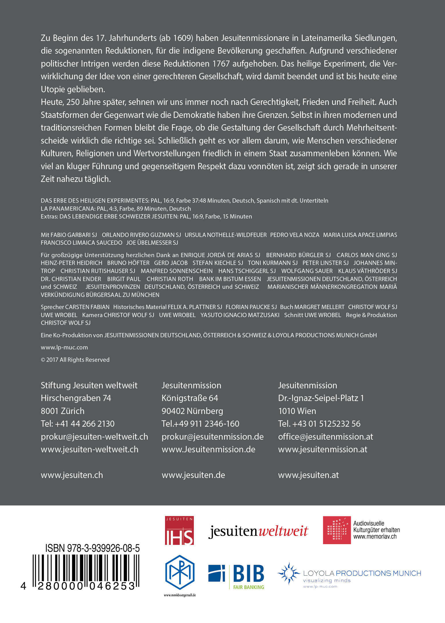 Zu Beginn des 17. Jahrhunderts (ab 1609) haben Jesuitenmissionare in Lateinamerika Siedlungen, die sogenannten Reduktionen, für die indigene Bevölkerung geschaffen. Aufgrund verschiedener politischer Intrigen werden diese Reduktionen 1767 aufgehoben. Das heilige Experiment, die Verwirklichung der Idee von einer gerechteren Gesellschaft, wird damit beendet und ist bis heute eine Utopie geblieben.