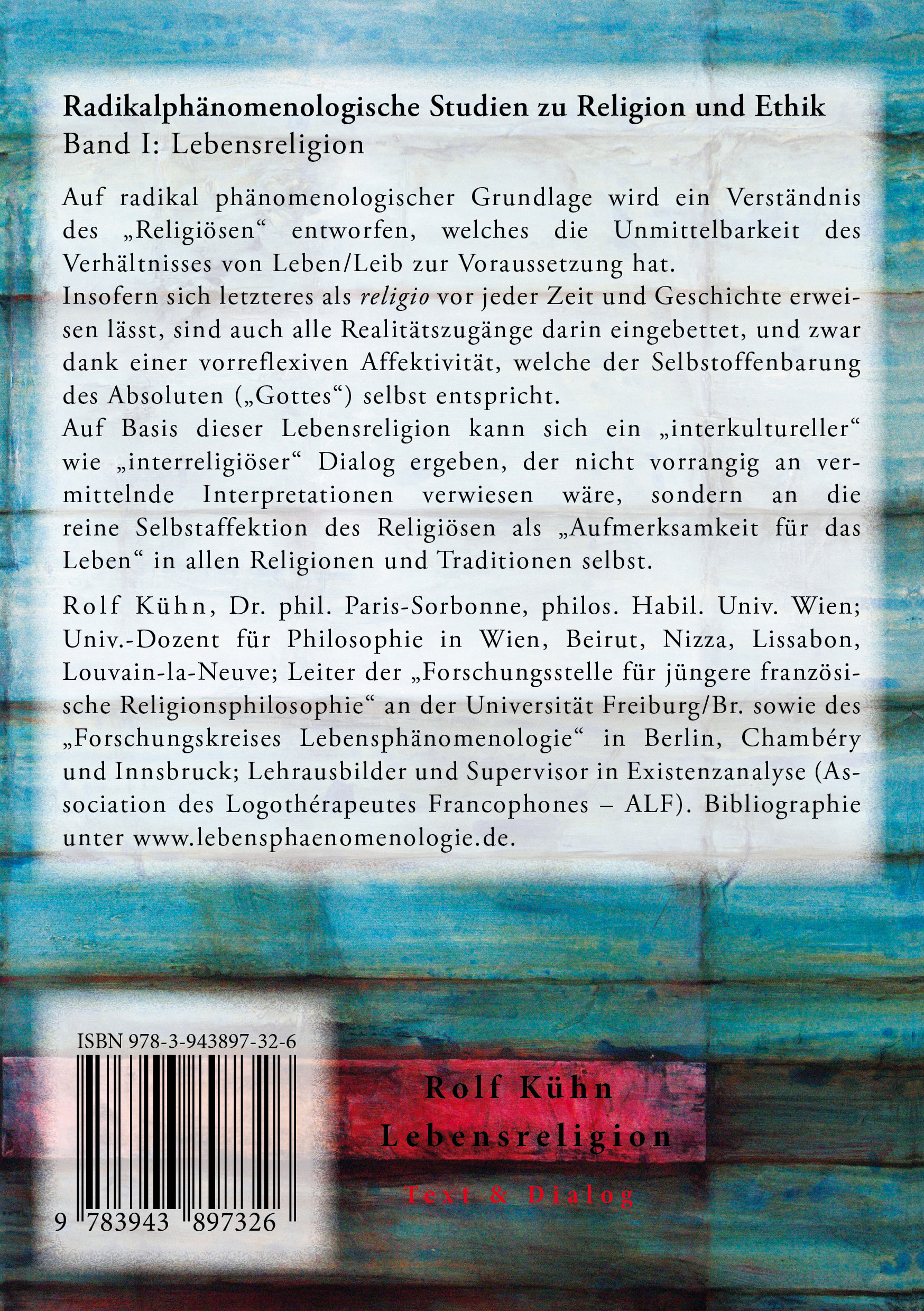 Rolf Kühn, geb. 1944, Univ.-Dozent für Philosophie in Wien, Beirut, Nizza, Lissabon, Louvain-la-Neuve und Freiburg i. Br. – Leiter der "Forschungsstelle für neuere französische Religionsphilosophie" sowie des "Forschungskreises Lebensphänomenologie" Freiburg i. Br. (www.lebensphaenomenologie.de). Autor zahlreicher Veröffentlichungen mit den Forschungsschwerpunkten Phänomenologie, psychologische Anthropologie, Kultur- und Religionsphilosophie.