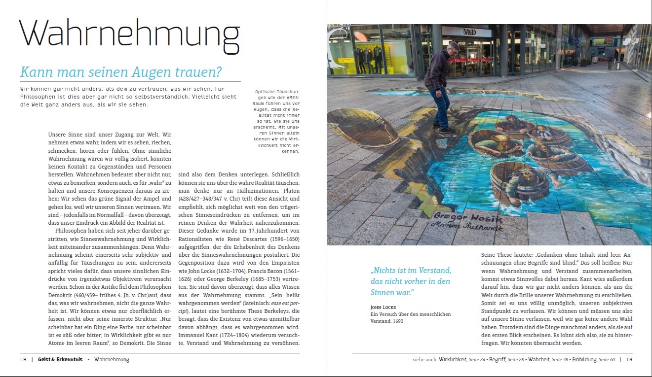 Thomas Vašek versteht es, mit verständlicher Sprache und sehr anschaulichen Beispielen auch komplexe Zusammenhänge verständlich darzustellen. Unterstützt von zahlreichen Abbildungen gelingt ihm ein einzigartig unangestrengter Zugang zur Philosophie.