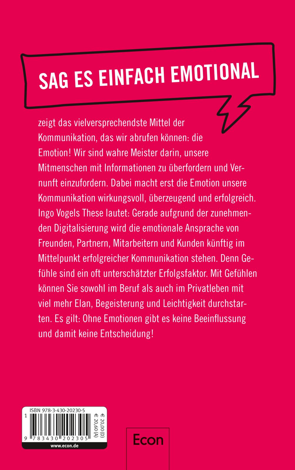 »Sag es einfach emotional« zeigt das vielversprechendste Mittel der Kommunikation, das wir abrufen können: Emotion! Wir sind wahre Meister darin, unsere Mitmenschen mit Informationen zu überfordern und Vernunft einzufordern.