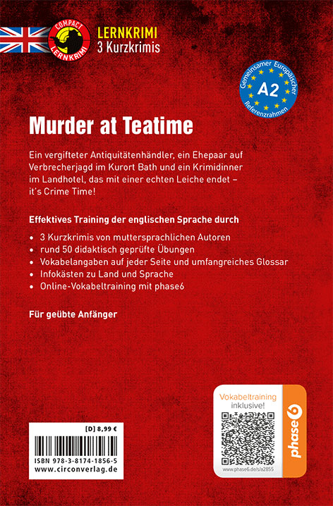 Sie lernen gerade Englisch und möchten Ihre Sprachkenntnisse verbessern oder vorhandenes Wissen auffrischen? Sie wollen lernen und dabei unterhalten werden? Sie lieben spannende Geschichten und wollen authentische Texte auf Englisch lesen? Dann sind unsere Lernkrimi Kurzkrimis genau das Richtige für Sie. In "Murder at Teatime" erwarten Sie drei spannende Kriminalfälle, die von muttersprachlichen Autor*innen speziell für das Niveau A2 geschrieben wurden. Mit dem einzigartigen Lernkonzept des Circon Verlags erwerben Sie spielerisch Sprachkompetenzen. Gehen Sie mit unseren Ermittler*innen auf Verbrecherjagd und verbessern Sie ganz nebenbei Ihren Englisch-Wortschatz, vertiefen Sie Ihre Grammatikkenntnisse und erfahren Sie Wissenswertes über Land und Leute. Speziell konzipierte, thematische Übungen werden in die spannenden Kriminalfälle eingebunden und erhöhen den Lerneffekt. So geht Sprachenlernen ganz nebenbei!