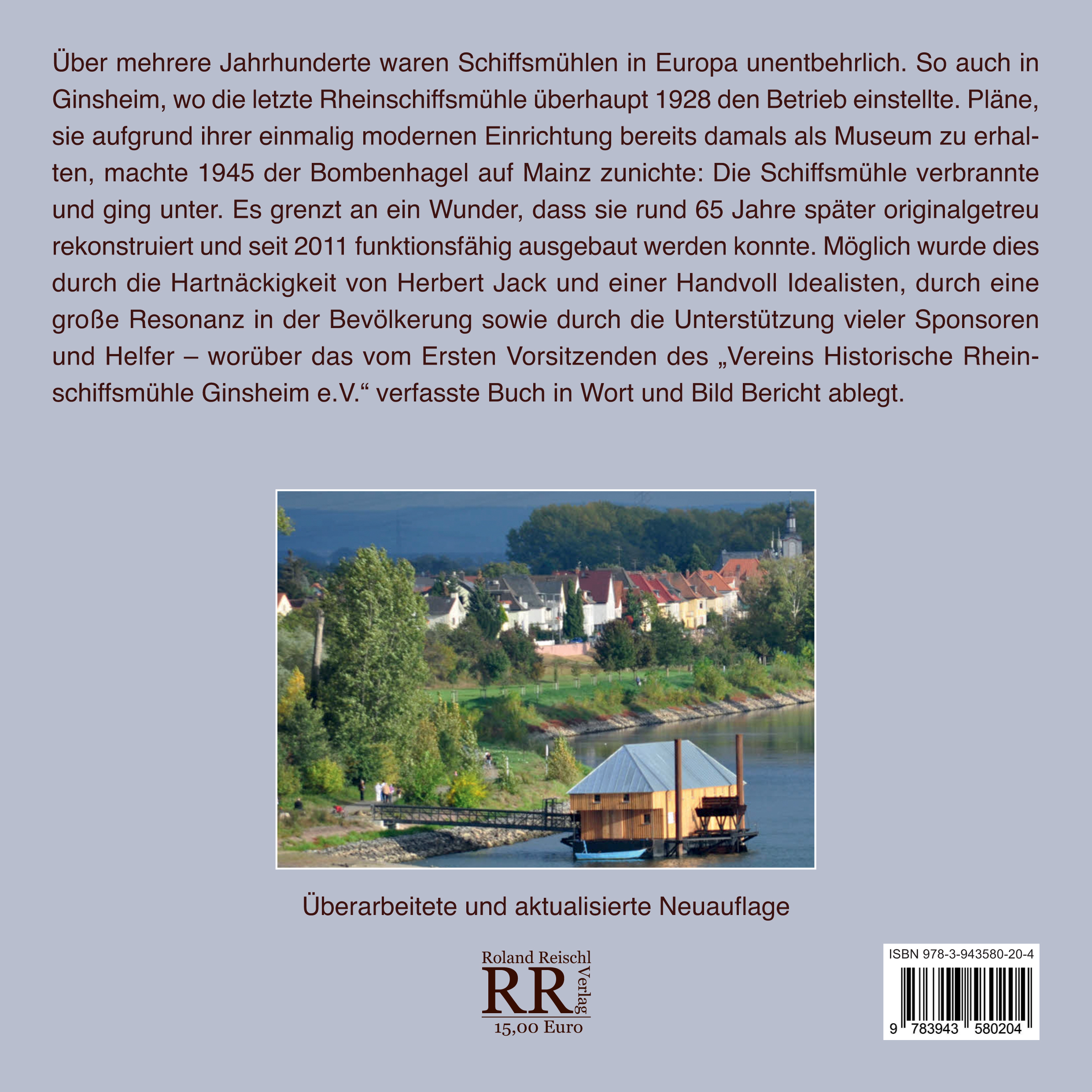 Über mehrere Jahrhunderte waren Schiffsmühlen in Europa unentbehrlich. So auch in Ginsheim, wo die letzte Rheinschiffsmühle überhaupt 1928 den Betrieb einstellte. Pläne, sie aufgrund ihrer einmalig modernen Einrichtung bereits damals als Museum zu erhalten, machte 1945 der Bombenhagel auf Mainz zunichte: Die Schiffsmühle verbrannte und ging unter. Es grenzt an ein Wunder, dass sie rund 65 Jahre später originalgetreu rekonstruiert und seit 2011 funktionsfähig ausgebaut werden konnte. Möglich wurde dies durch die Hartnäckigkeit von Herbert Jack und einer Handvoll Idealisten, durch eine große Resonanz in der Bevölkerung sowie durch die Unterstützung vieler Sponsoren und Helfer – worüber das vom Ersten Vorsitzenden des Vereins Historische Rheinschiffsmühle Ginsheim e.V. verfasste Buch in Wort und Bild Bericht ablegt.