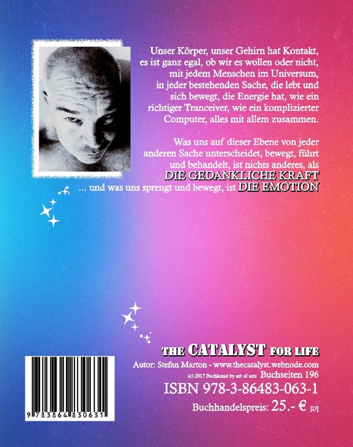 "The Catalyst for Live" ist ein bewegendes Buch über das Leben eines ungarischen Mannes, der durch viele Tiefen gegangen ist, um so die höchsten Höhen zu erleben, um den Weg zur Seligkeit zu finden hat. Ursache und Wirkung sind ihm bewusst geworden und dass Gedanken und Emotionen so viel mehr sind, als sie scheinen. Die Aussage „man erntet, was man sät“ hätte von ihm sein können, wäre es nicht vor langer Zeit schon geschrieben worden. Mit diesem Buch möchte er Menschen motivieren, sich mit ihrer Welt auseinanderzusetzen, um zu erkennen, welch große Wunder deren die Beachtung hervorgebracht werden können. Stelle deine Antenne auf Empfang und lass dich inspirieren durch dein bewusstes Gefühl und durch dieses Buch, sodass auch dein Leben tagtäglich zum Wunder wird.