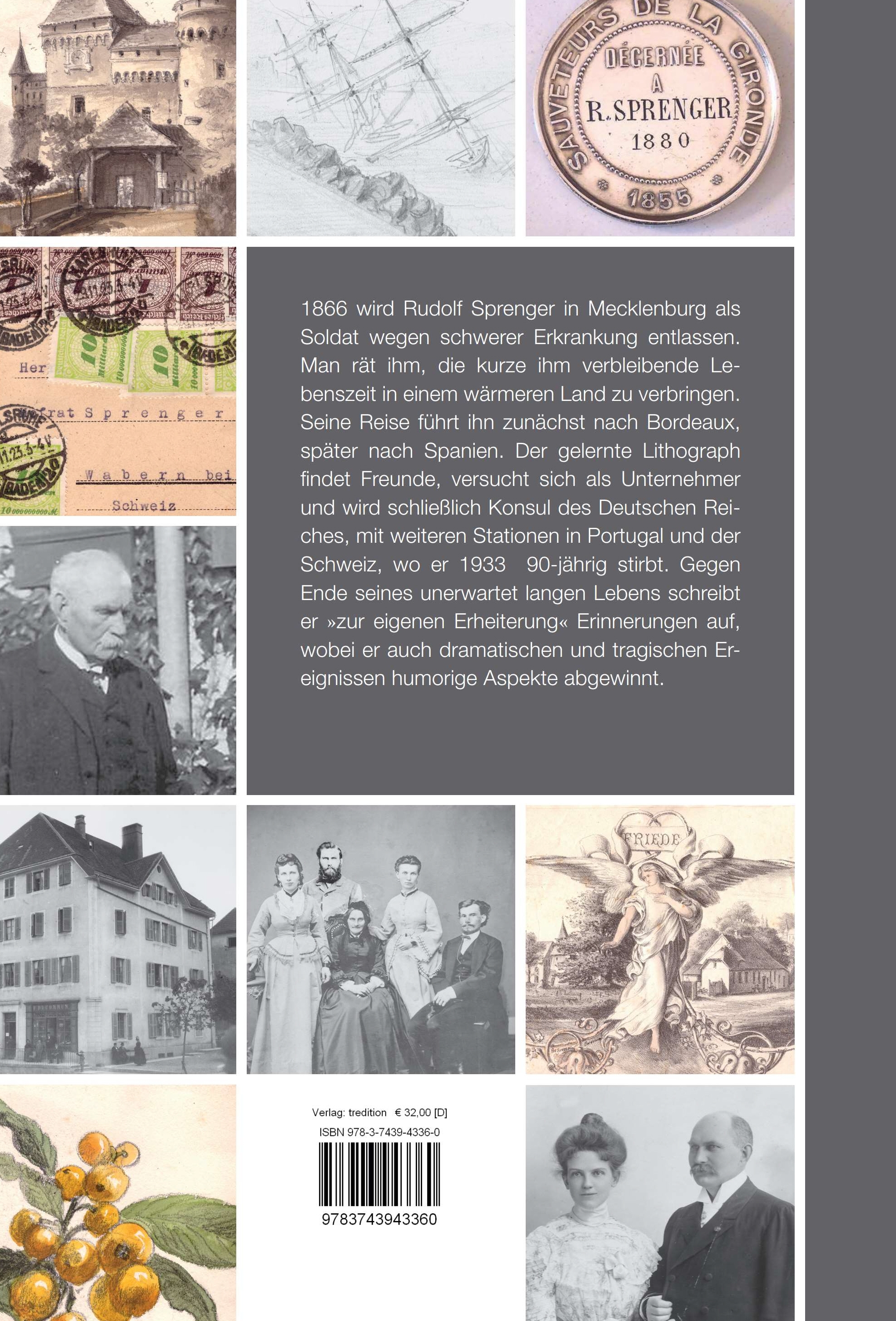 1866 wird Rudolf Sprenger in Mecklenburg als Soldat wegen schwerer Erkrankung entlassen. Man rät ihm, die kurze ihm verbleibende Lebenszeit in einem wärmeren Land zu verbringen. Seine Reise führt ihn zunächst nach Bordeaux, später nach Spanien. Der gelernte Lithograph findet Freunde, versucht sich als Unternehmer und wird schließlich Konsul des Deutschen Reiches, mit weiteren Stationen in Portugal und der Schweiz, wo er 1933 90jährig stirbt. Gegen Ende seines unerwartet langen Lebens schreibt er »zur eigenen Erheiterung« Erinnerungen auf, wobei er auch dramatischen und tragischen Ereignissen humorige Aspekte abgewinnt.Die Erinnerungen des Konsuls Sprenger vermitteln aus einer sehr persönlichen Perspektive ein farbiges Bild der Periode von der Mitte des 19. Jahrhunderts bis in die Jahre nach dem ersten Weltkrieg.